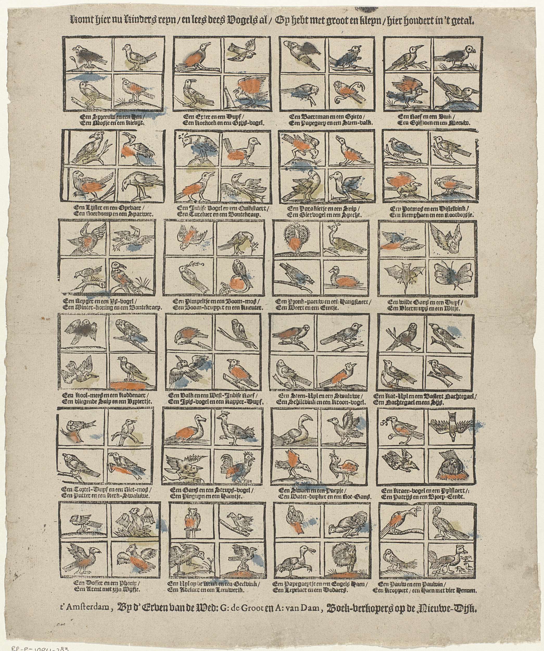 Komt hier nu Kinders reijn /en lees dees Vogels al / Gy hebt met groot en kleyn / hier hondert in 't getal
