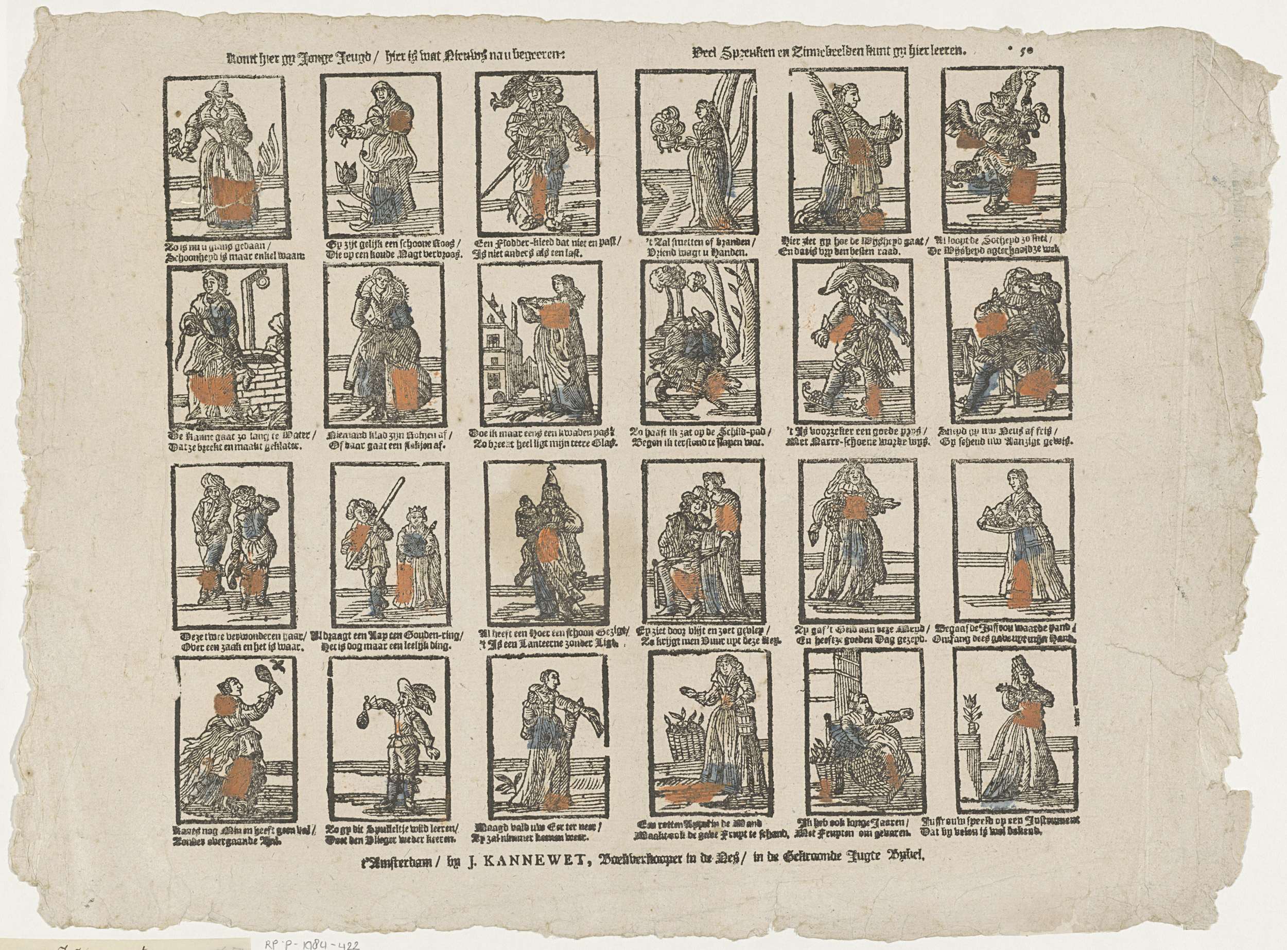 Blad met 24 verbeeldingen van spreuken en zinnebeelden. Onder elke afbeelding een tweeregelig vers. Genummerd rechtsboven: *50.