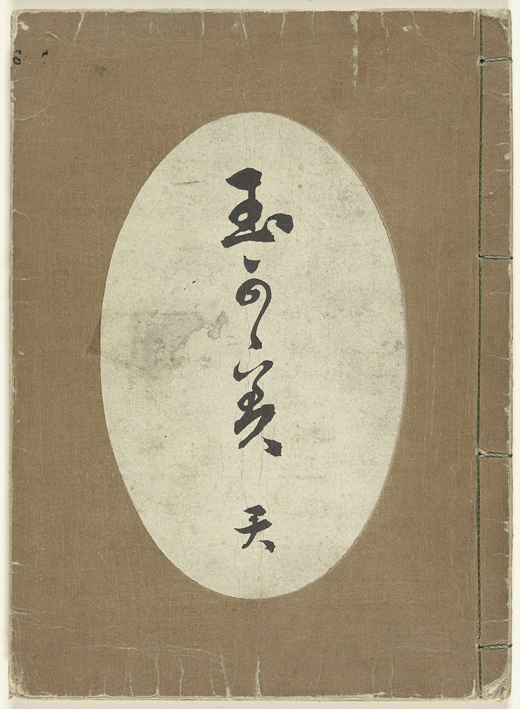 Patroonboek met verschillende stofontwerpen; lichtbruine kaft met titel in witte ovaalvorm; uitvouwbare prent waarop bloemen en water; 13 bladen: eerste pagina, kalligrafie; 12 bladen met diverse patroonontwerpen, waaronder bloemen, planten, dieren en waaiers.