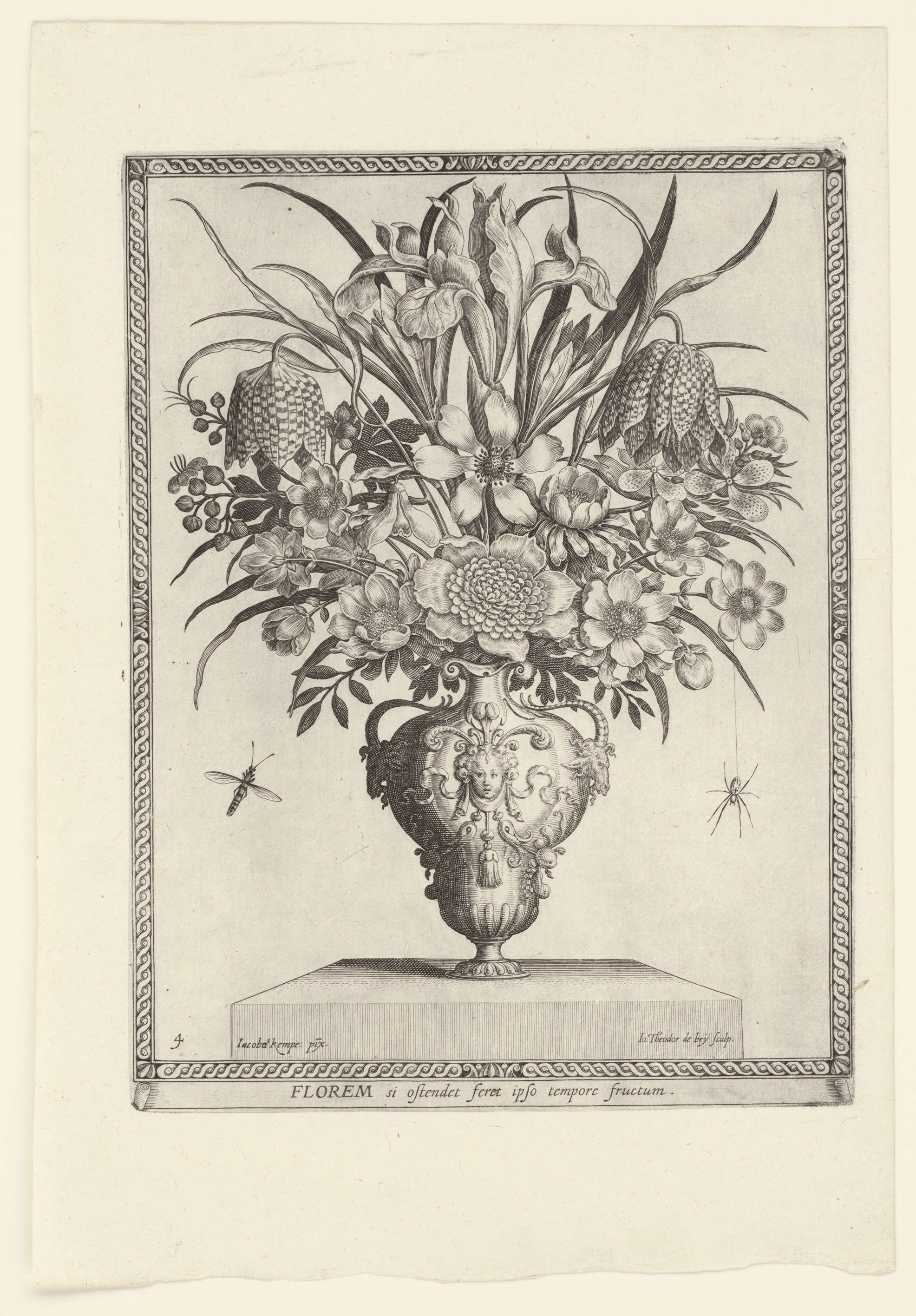In zes rijk versierde vazen wordt een enorme variëteit aan bloemen uitgestald. De ornamentlijsten geven aan dat de prenten bedoeld waren om als schilderijen aan de muur te hangen. Daarop wijst ook het wisselend perspectief van de voetstukken. Deze afdrukken werden bij uitzondering bewaard in een prentalbum en bevinden zich daarom nog in perfecte staat.