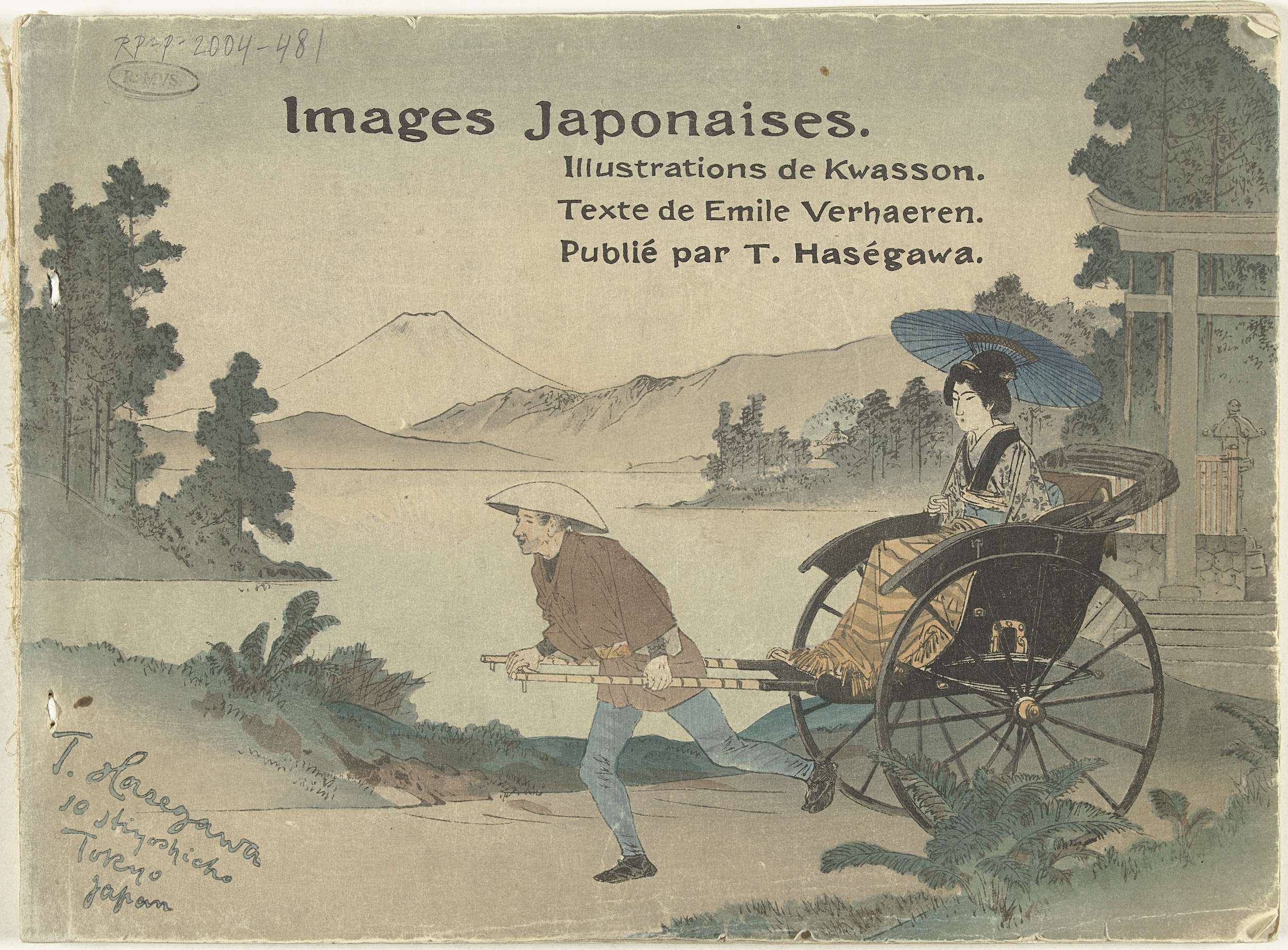 Boekje bestaande uit 15 bladen: voorkant, titelpagina, met afbeelding van vrouw in riksja met de berg Fuji op de achtergrond; volgende pagina`s, afbeeldingen van bloemen, vogels en landschappen en enkele gedichten in het Frans; voorlaatste pagina, colofon.
