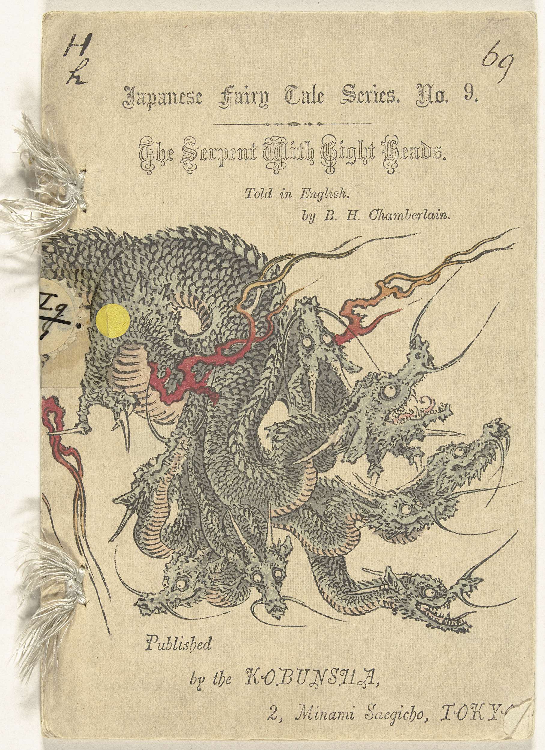Nummer negen uit een reeks met Japanse sprookjes, in het Engels; kaft met titel en afbeelding van achtkoppige slang; binnenkant kaft, colofon; dertien bladen, Engelse tekst met illustraties; binnenkant achterblad, lijst van reekstitels.