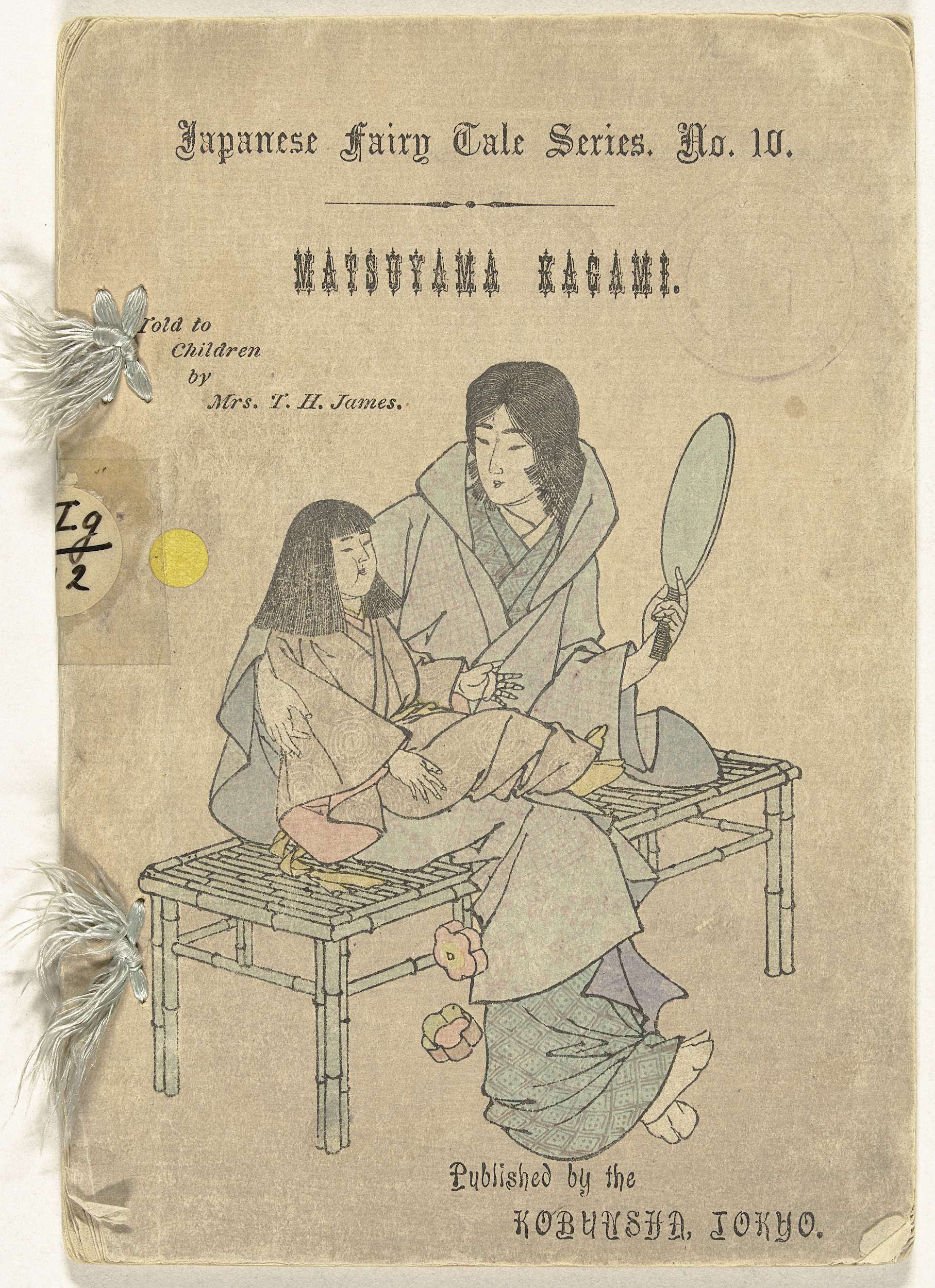 Nummer tien uit een reeks met Japanse sprookjes, in het Engels; kaft met titel en afbeelding van vrouw met spiegel in hand en kind op schoot; binnenkant kaft, colofon; tien bladen, Engelse tekst met illustraties.