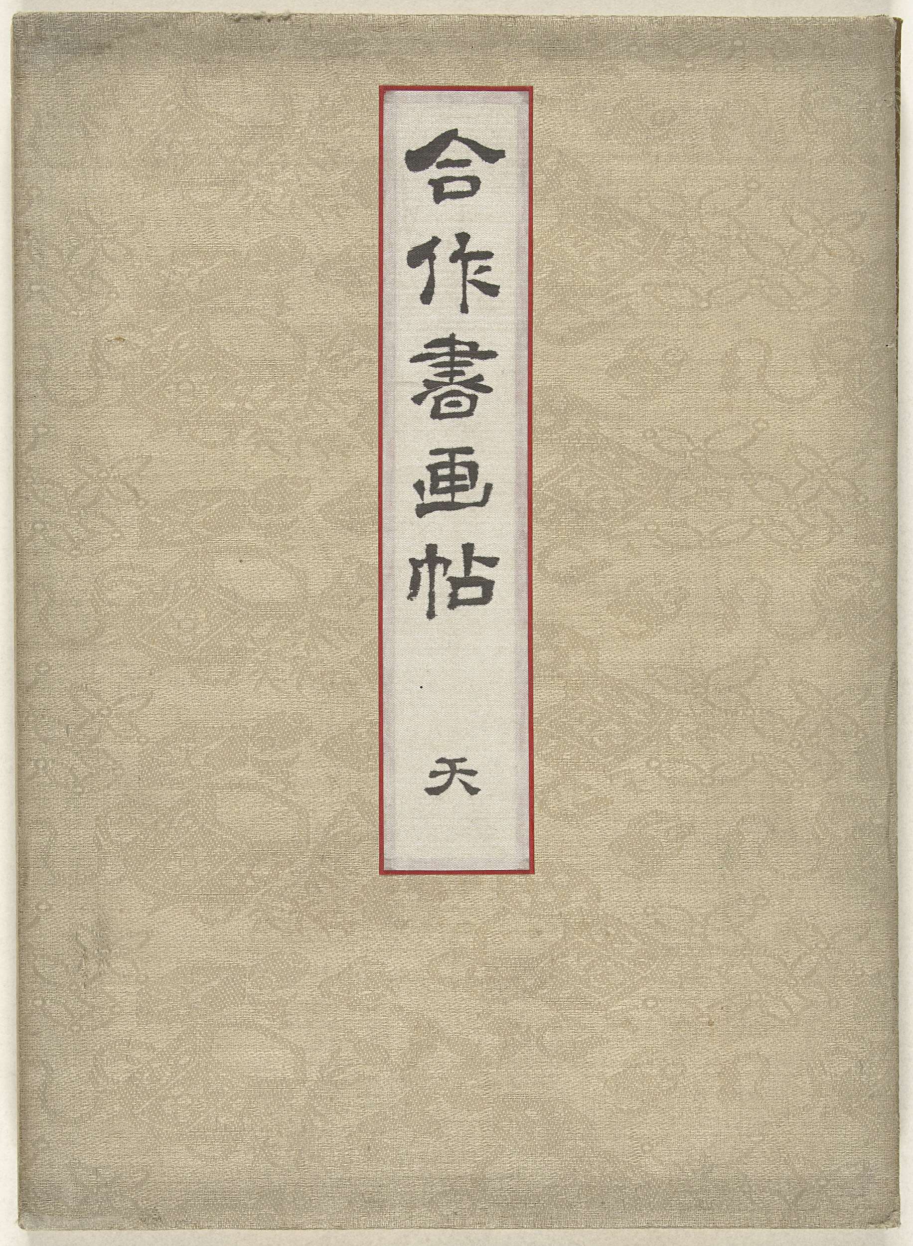 Deel één (van drie?); lichtgele borkaten kaft met middenboven handgeschreven titelstrook; 49 bladen met kalligrafie waarbij afbeeldingen van personen, dieren, landschappen, stillevens door veel verschillende kunstenaars.