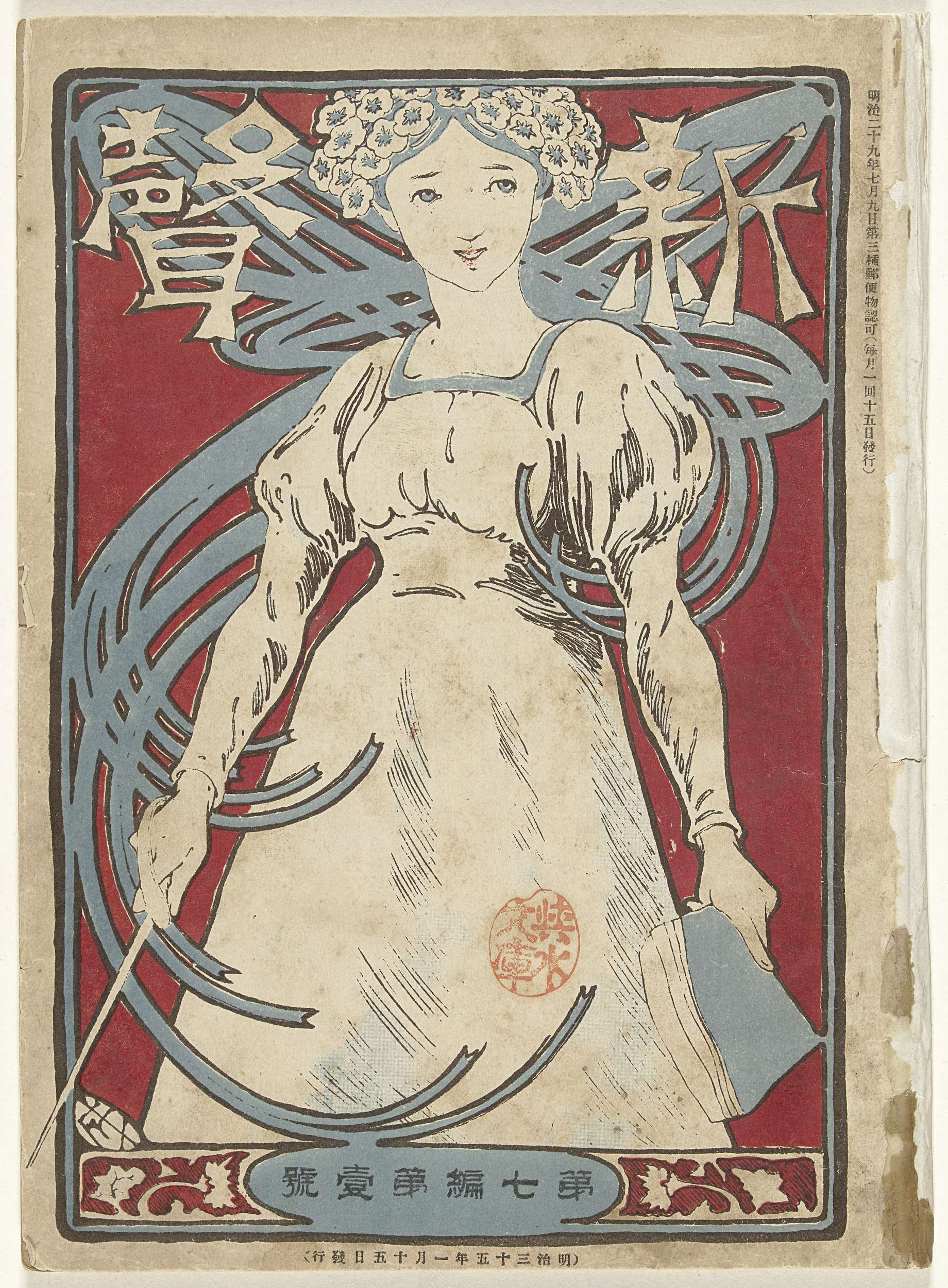 Nummer één van jaargang zeven van een maandelijks literair tijdschrift met voornamelijk bijdragen van jonge schrijvers; kaft waarop vrouw met degen en boek, tegen rode achtergrond; 88 pagina`s, genummerd; tekst met voornamelijk zwart-wit illustraties.