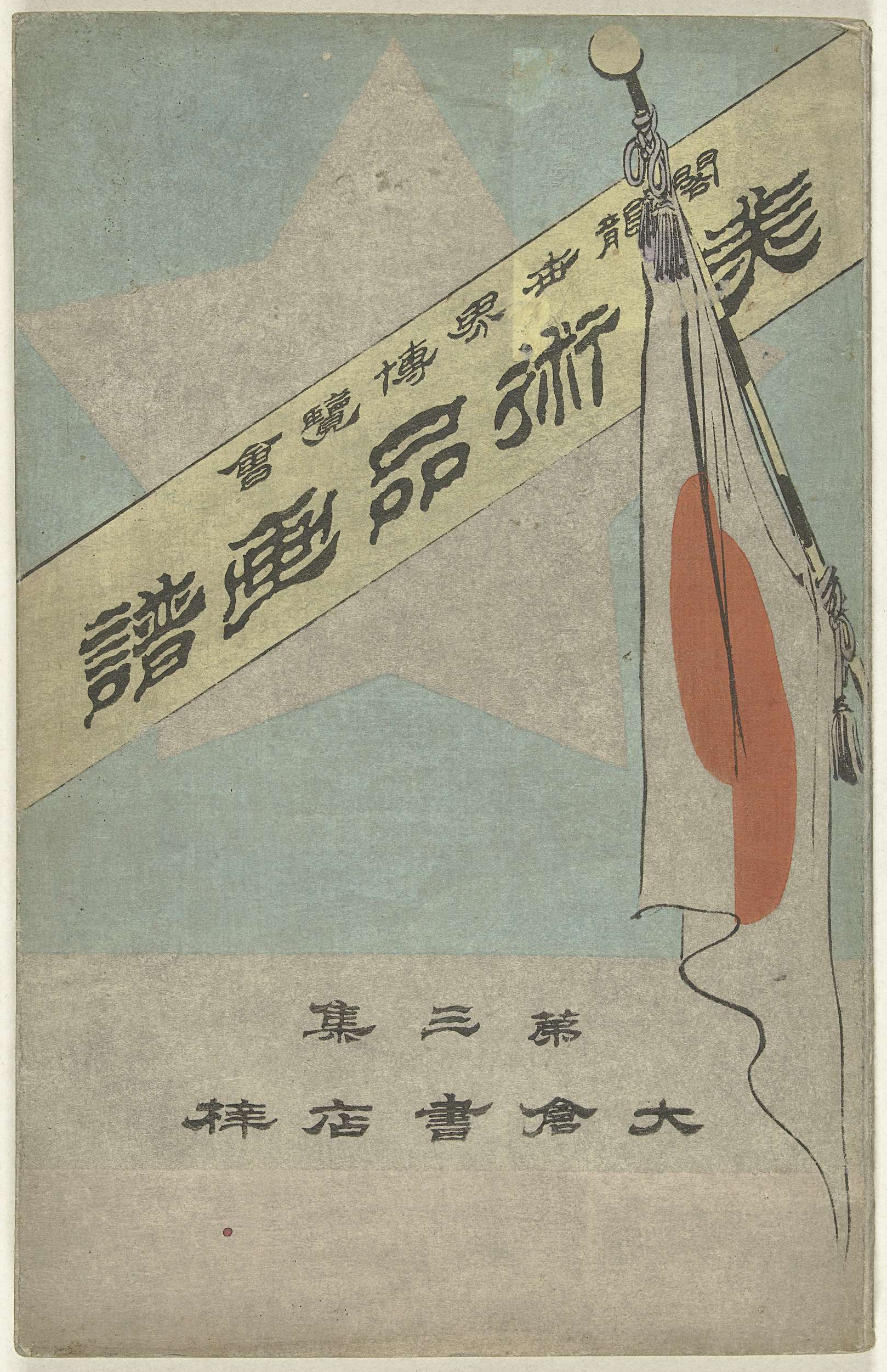 Deel drie (van vier); kaft met Japanse vlag en witte ster; titel op diagonale gele baan; 17 bladen: binnenkant kaft en tegenover liggende pagina, inleiding; 20 pagina`s met afbeeldingen van kunstvoorwerpen getoond op de wereldtentoonstelling van 1893; twee pagina`s, nawoord; voorlaatste pagina, colofon; laatste pagina, advertentie.