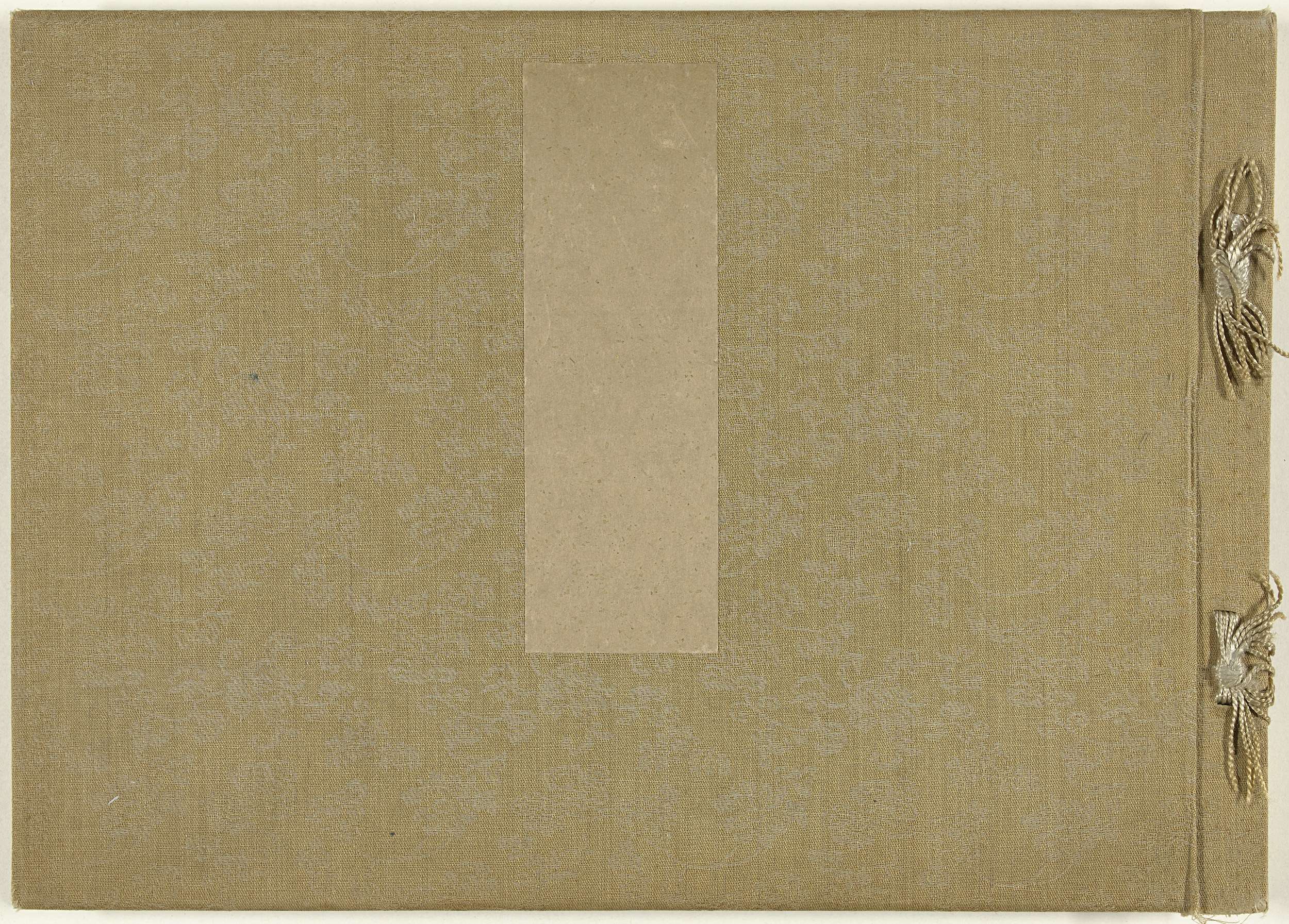 Opnieuw gemonteerd album met ontwerpen voor boekomslagen; goudkleurige brokaten kaft met middenboven lichtbruine blanco titelstrook; 33 bladen: één pagina, voorwoord; één pagina, inleiding; één pagina, inhoudsopgave; 30 ontwerpen voor omslagen.