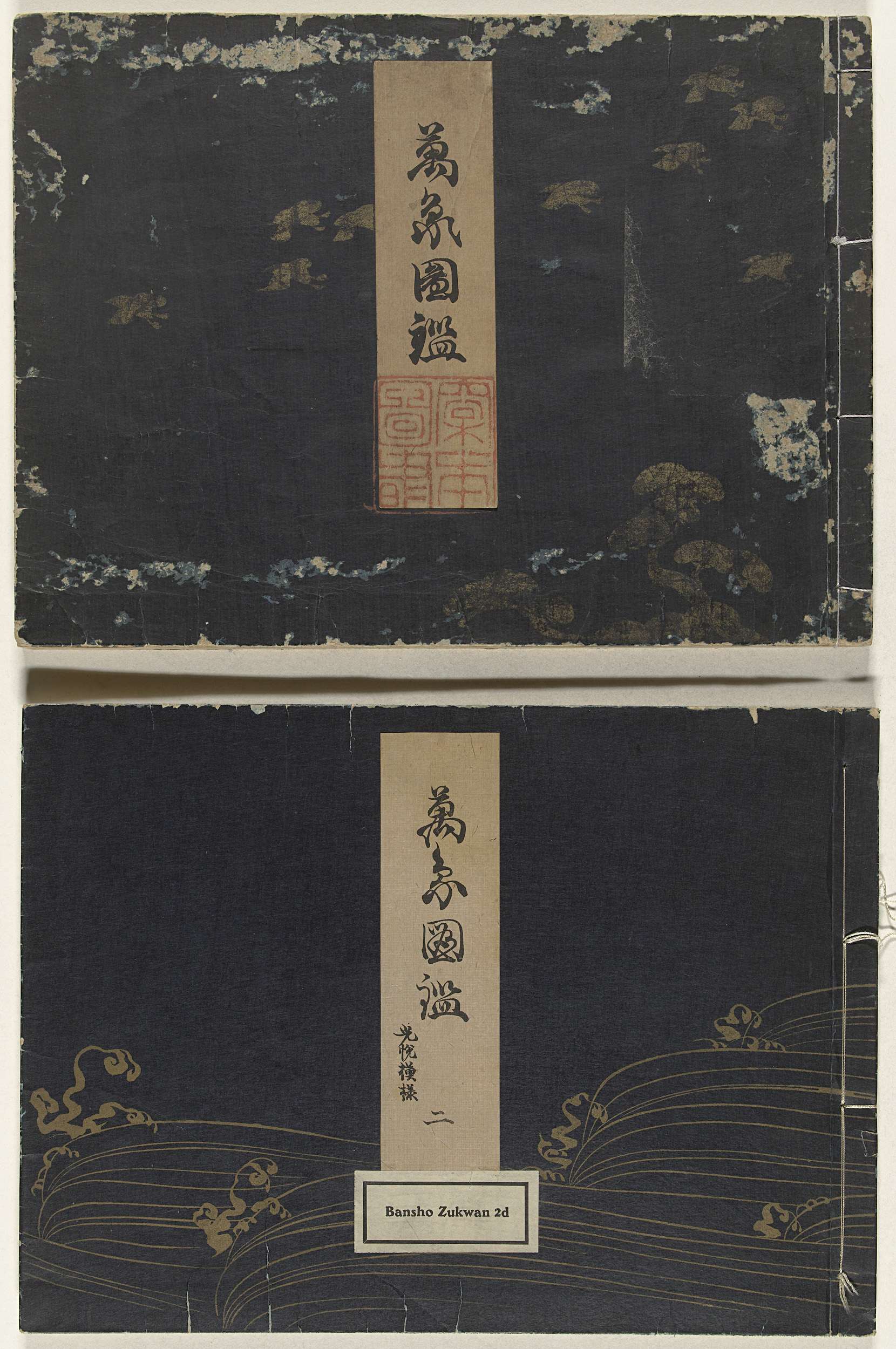 Twee delen (compleet) met afbeeldingen van landschappen, bloemen, planten en dieren. In grijsgroene cassette met golfpatroon.