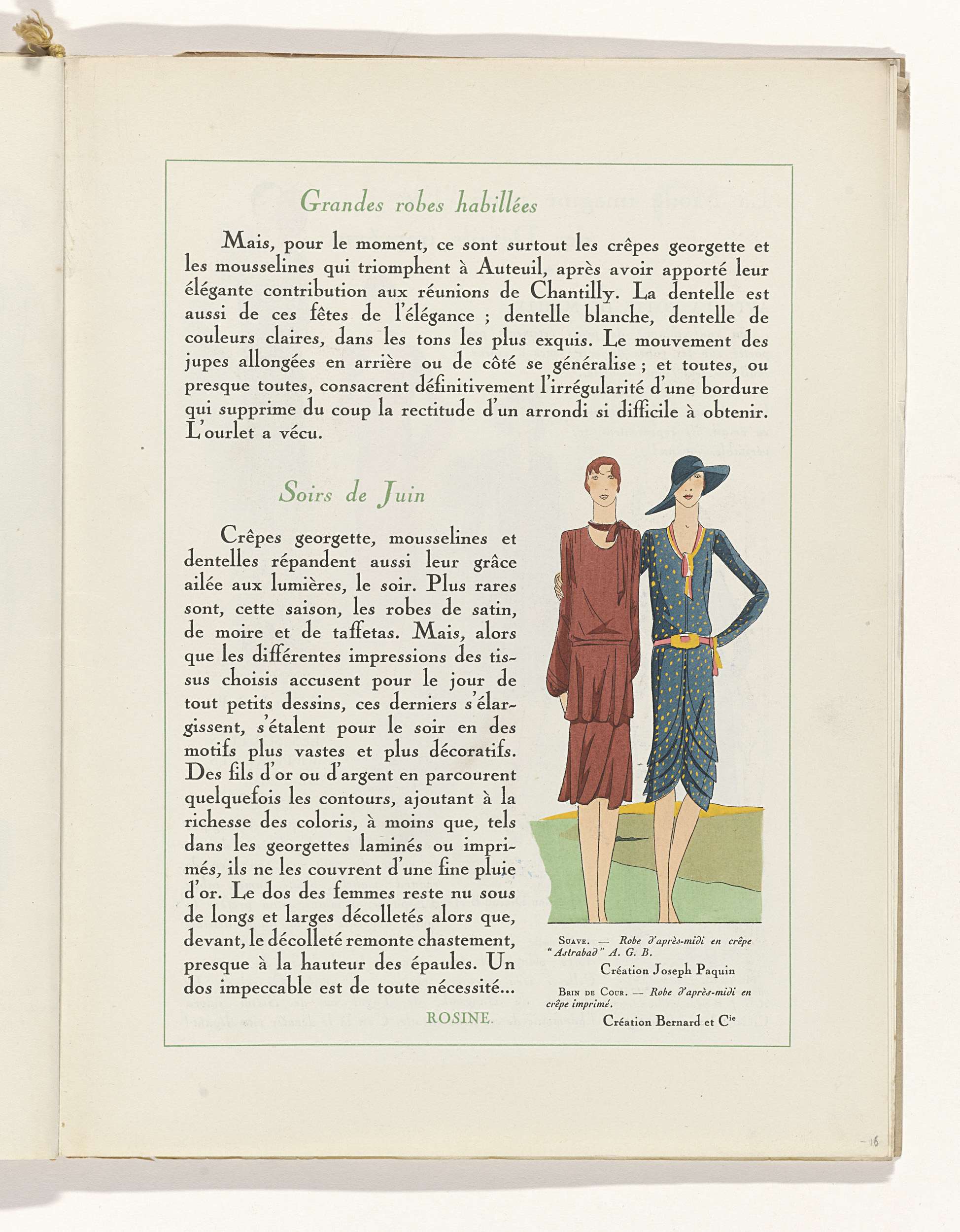 Art - Goût - Beauté, Feuillets de l' élégance féminine, Juin 1929, No. 106, 9e Année, p.16