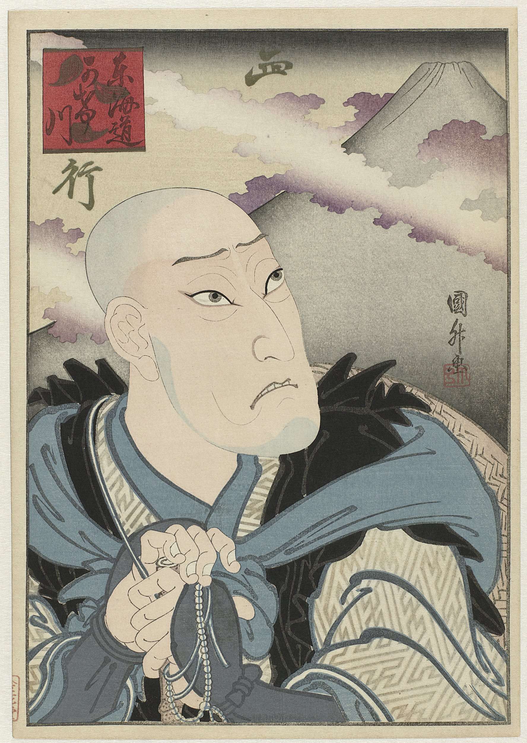 Een shini-e (memorieportret) van de acteur Ôkawa Hashizô I (Onoe Kikugorô III) als Saigyô hôshi (monnik Saigyô).