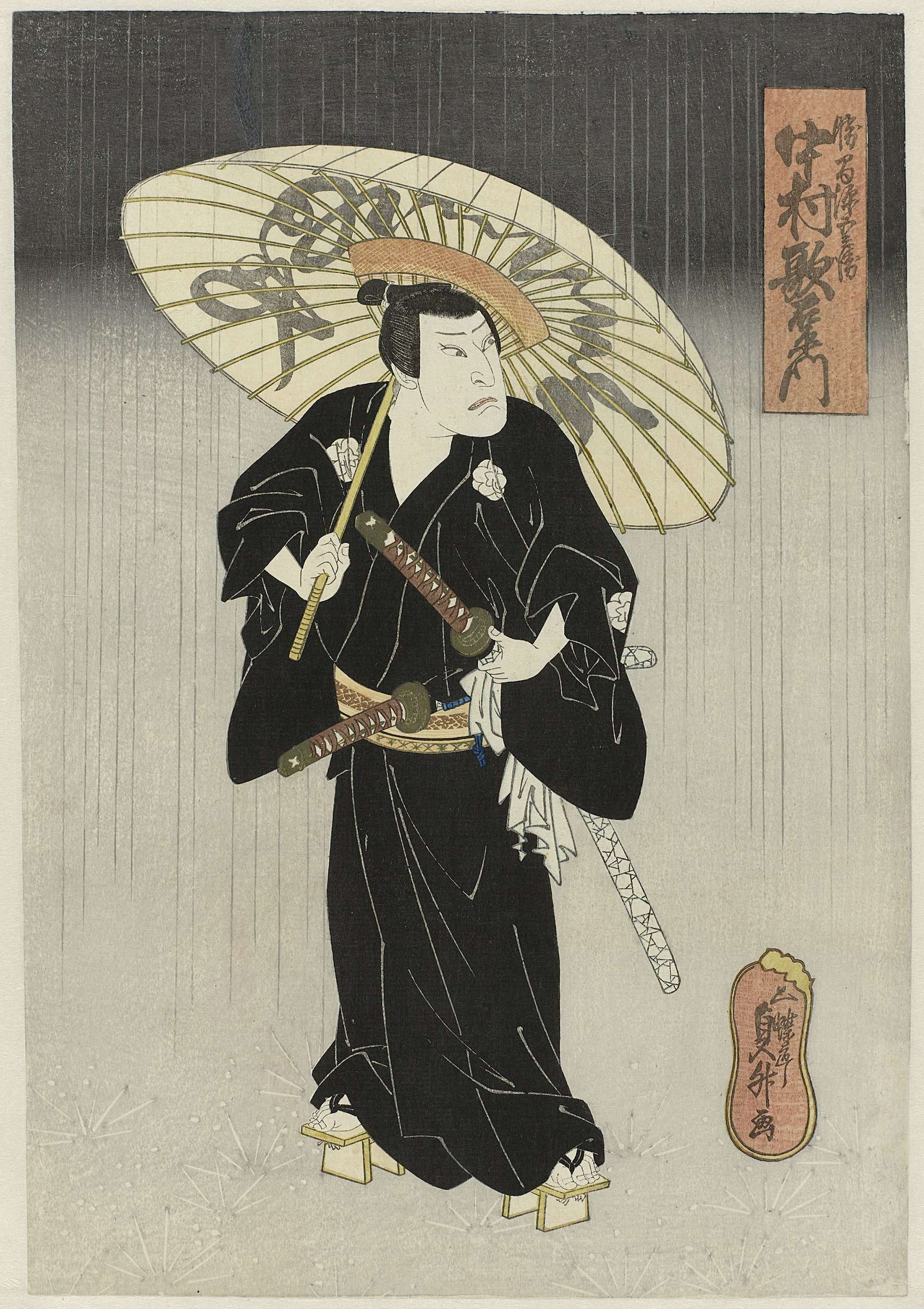 Nakamura Utaemon IV als Katsuma Gengobei in het toneelstuk ‘Godairiki koi no fûjime’, Naka Theater