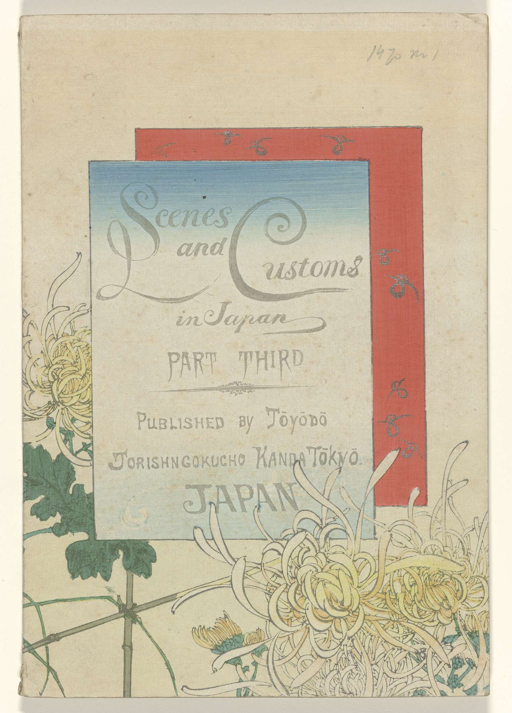 Boekje met witte kaft waarop chrysanten met titelcartouche in het midden; 12 bladen met verschillende taferelen van Japan; inhoudsopgave.