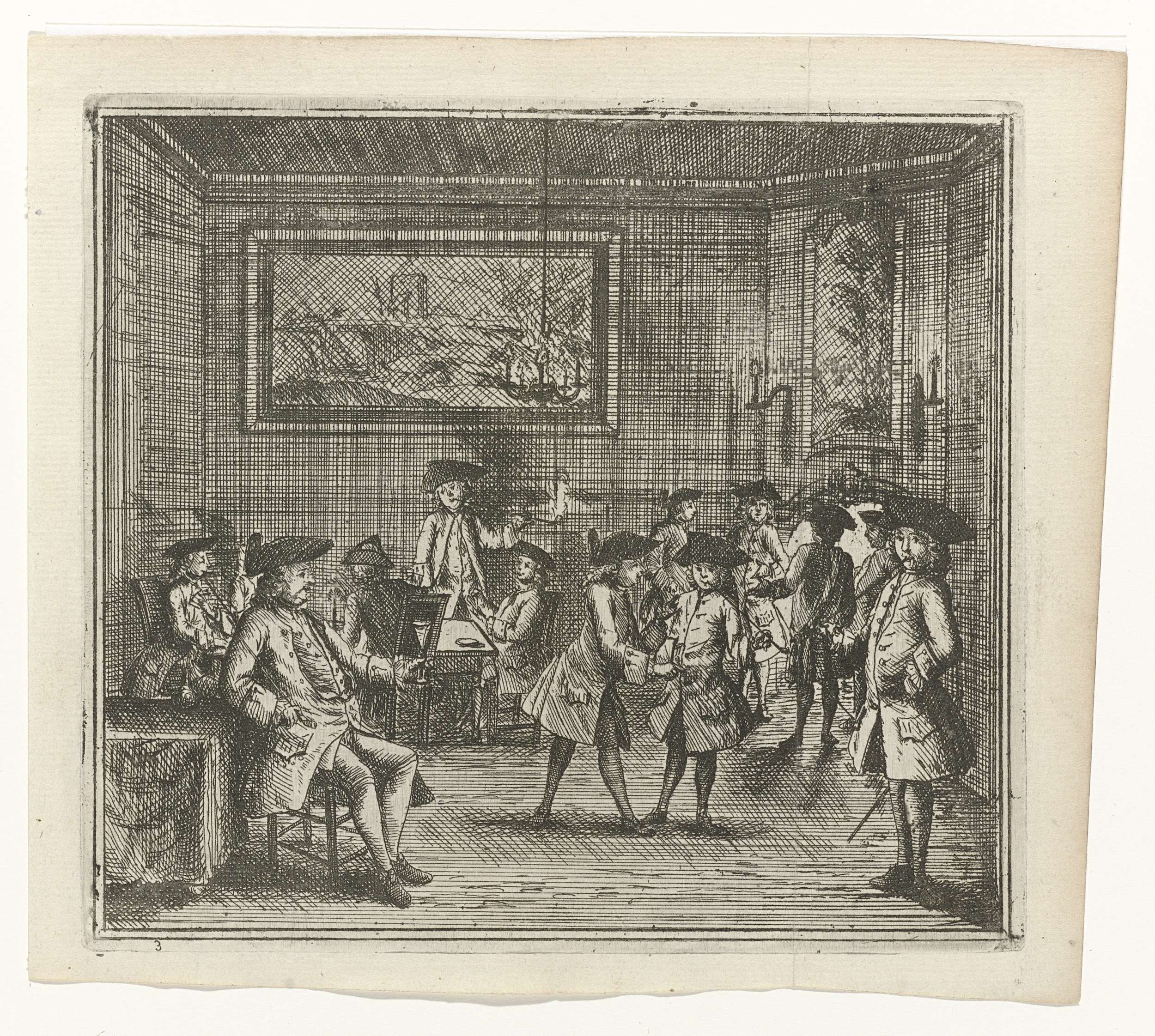 Rokende heren en jongens in een interieur
