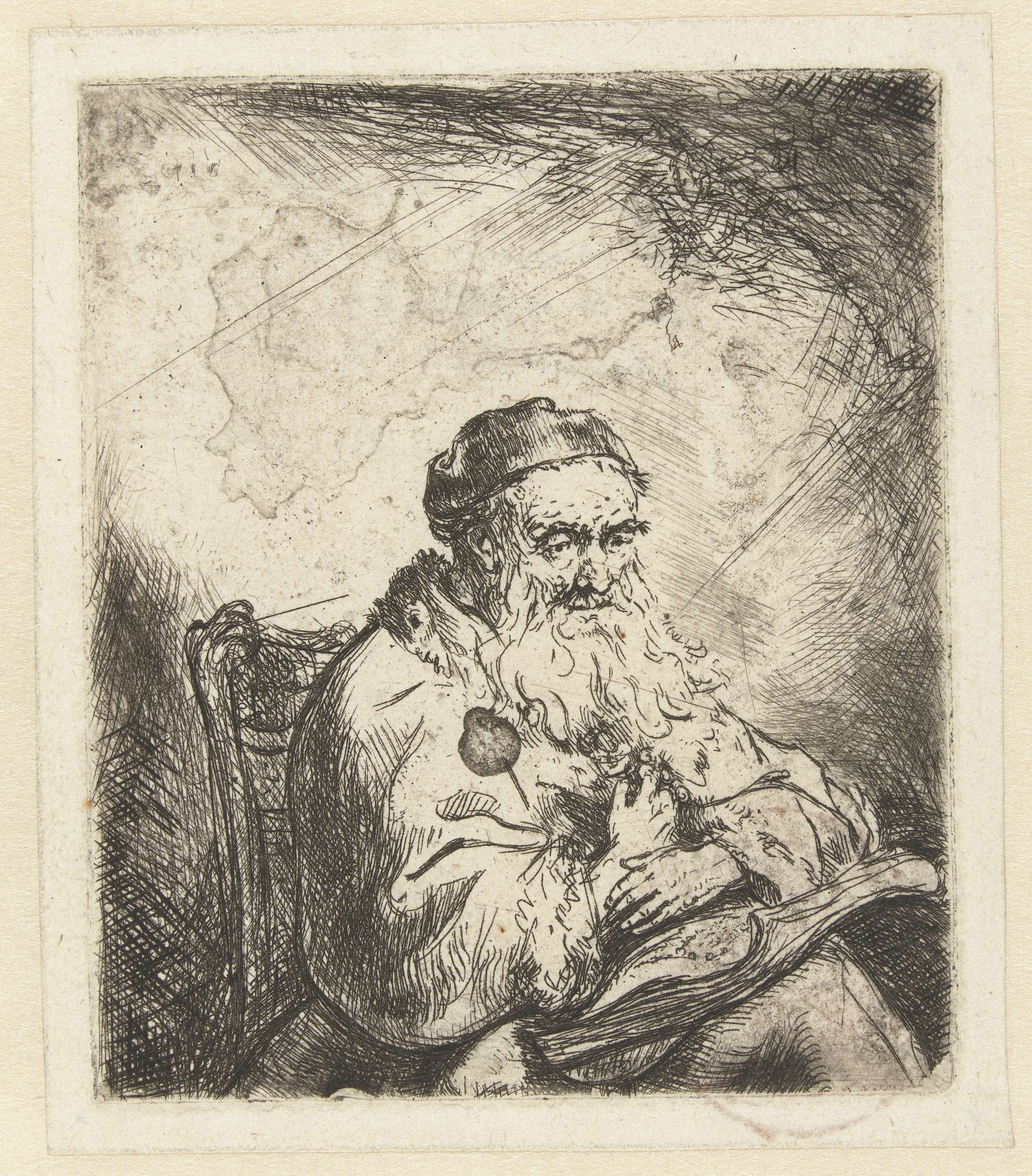 Zittende oude man met boek