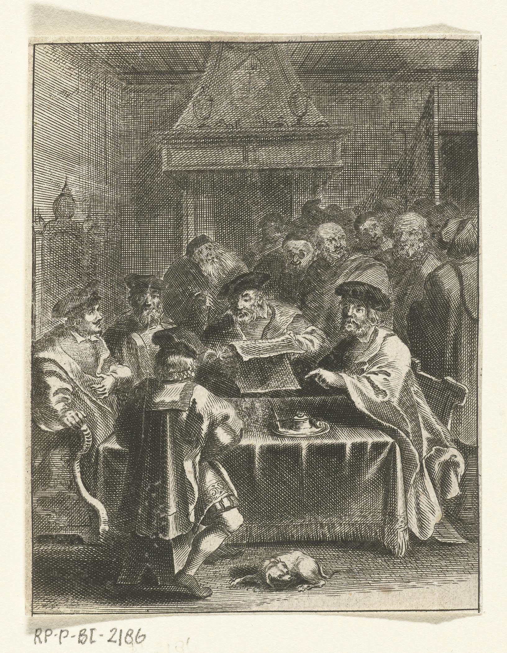 Raadsvergadering van de magistraten van de stad in het stadhuis waarbij de authenticiteit van het wonder bezegeld wordt.
