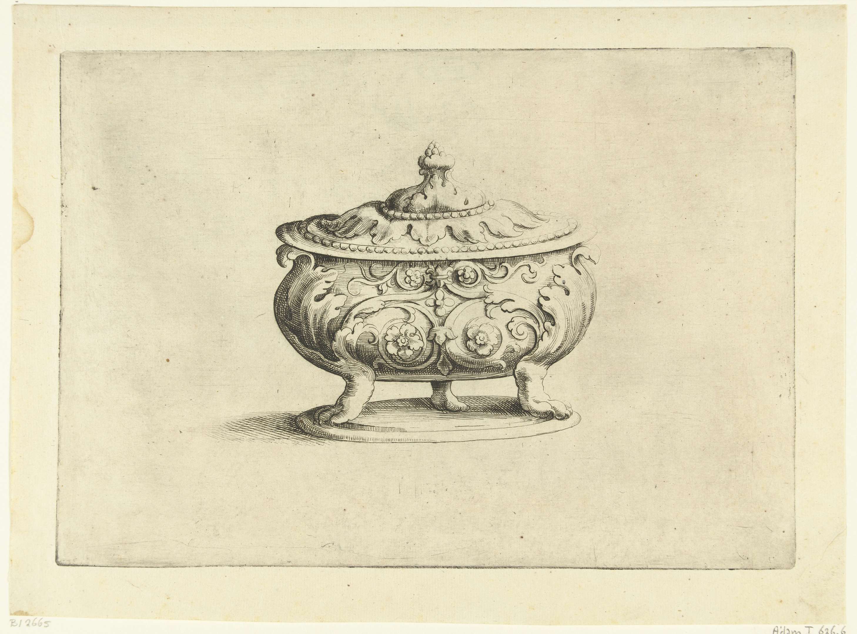Uit serie van 14 bladen met schalen, kommen en kistjes.
