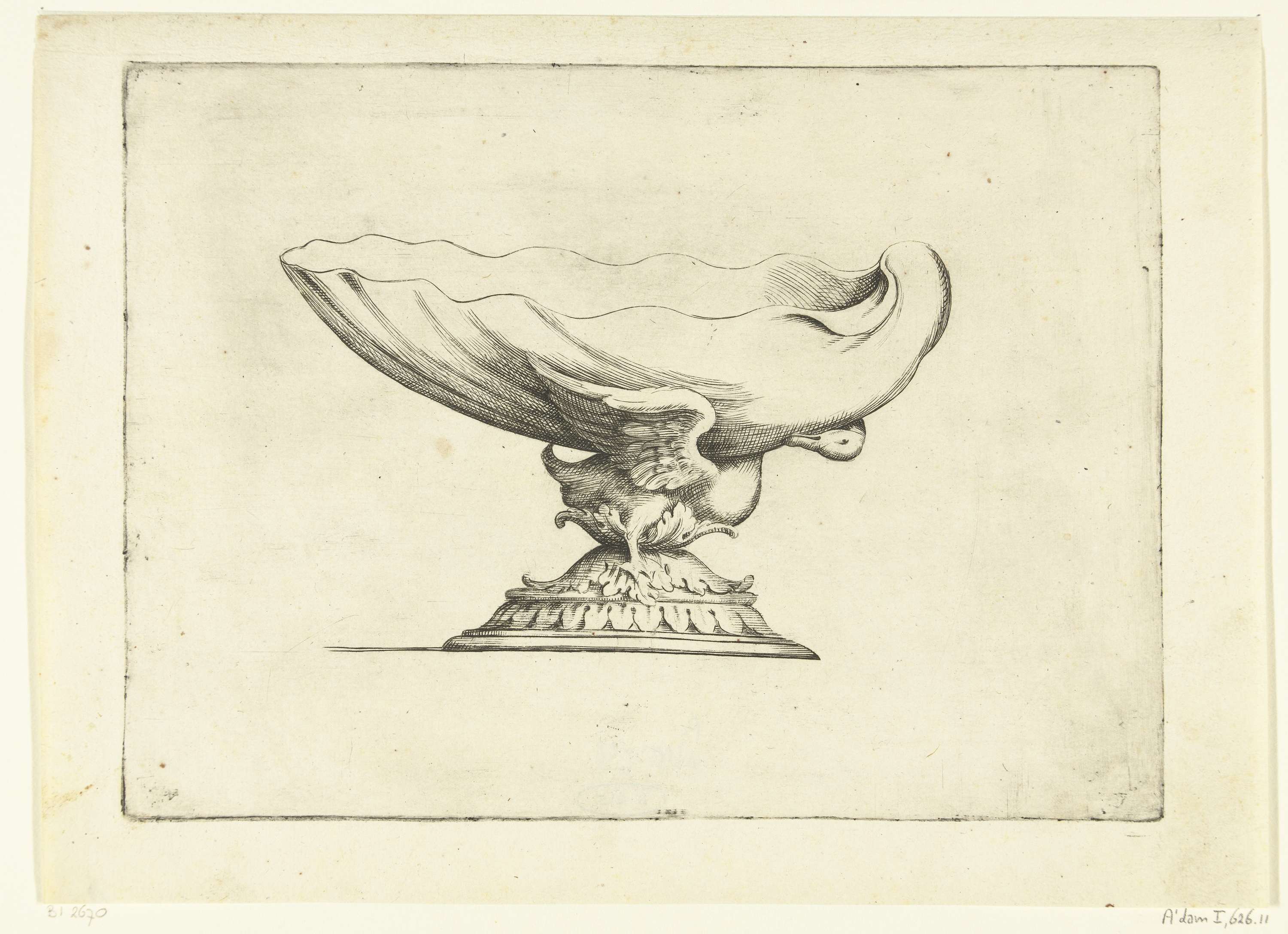 Schelpvormige schaal, gedragen door een eend