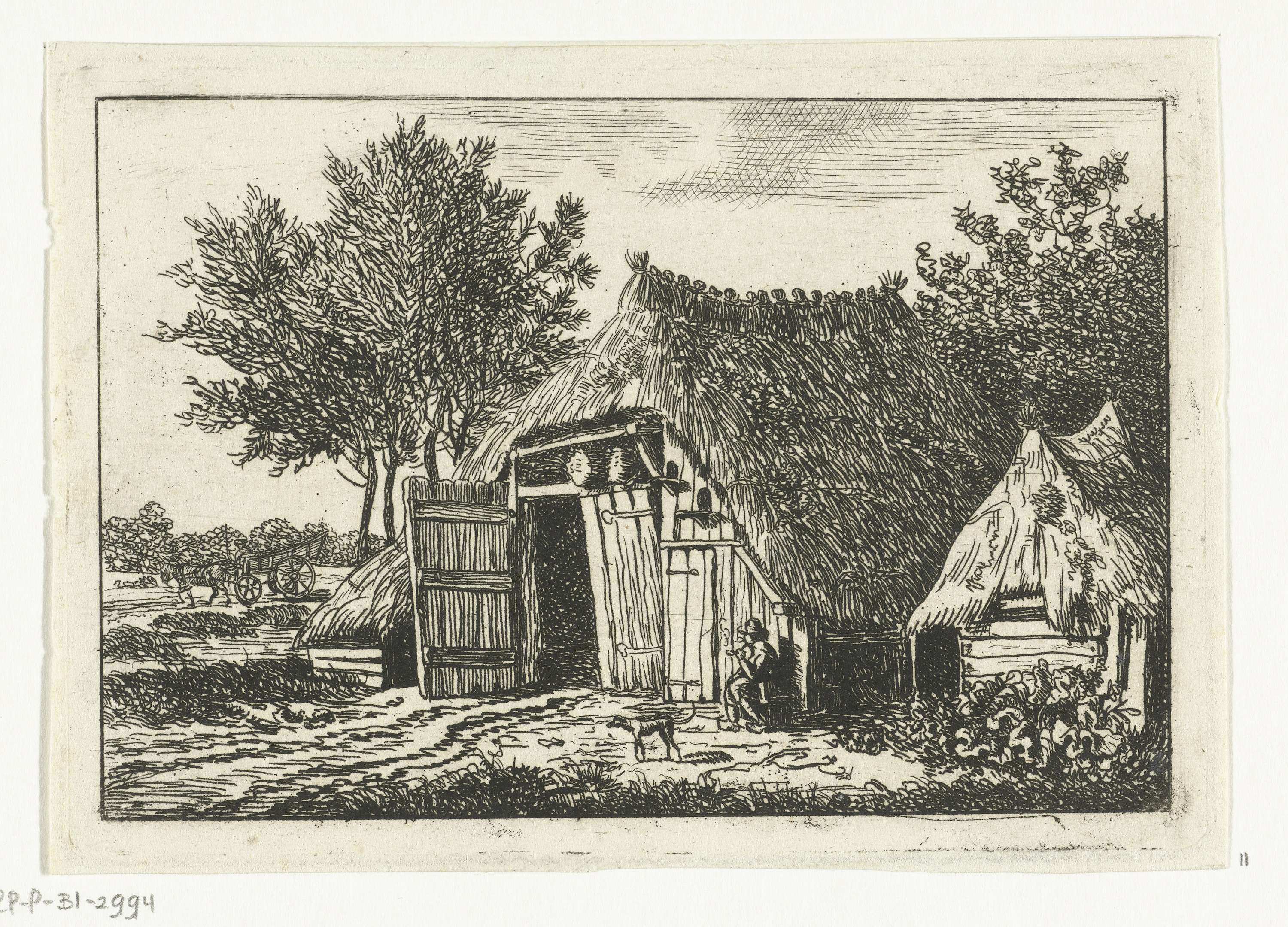 Pijprokende man zittend voor schuur buiten Hattem