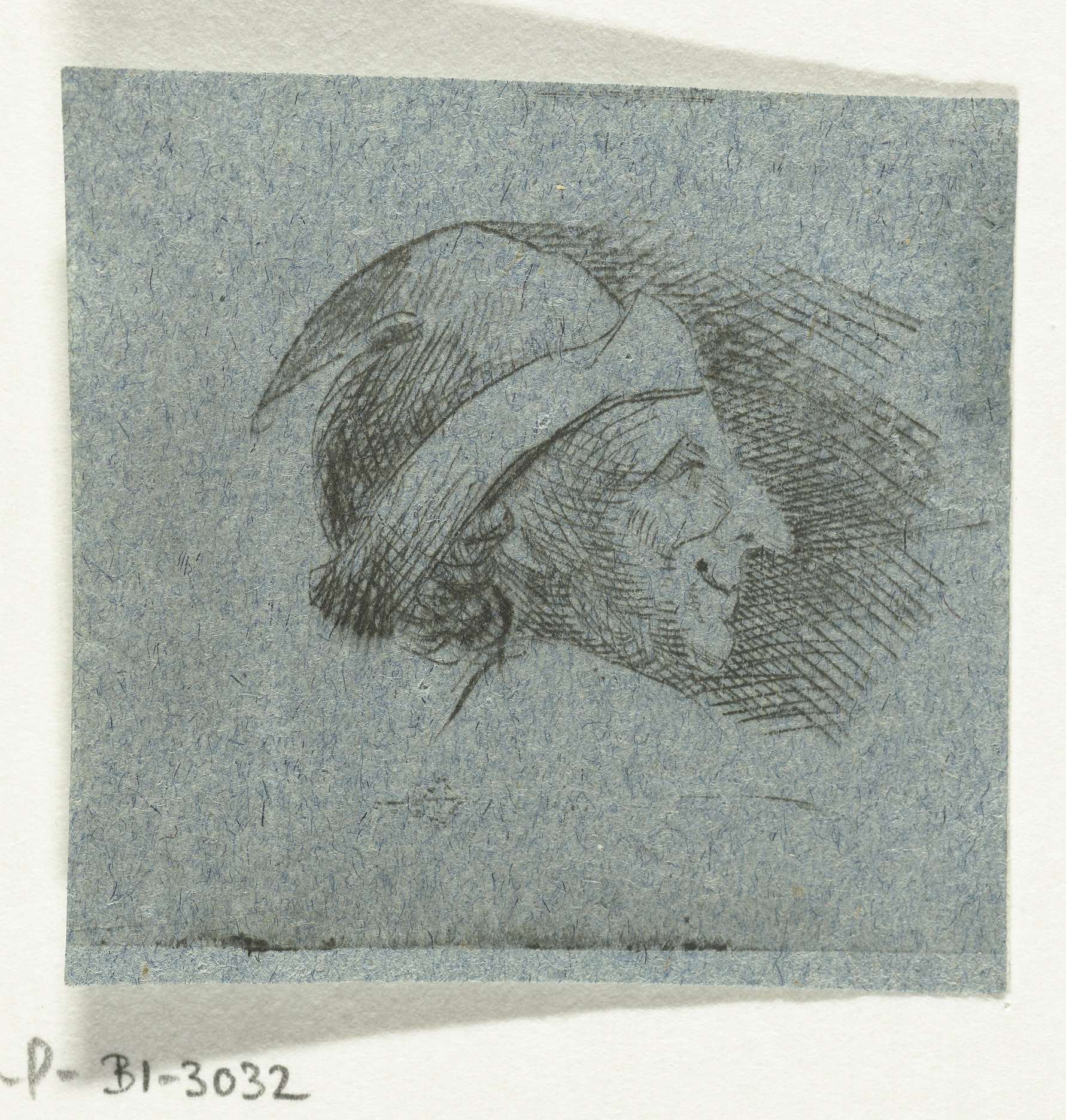 Hoofd van een man met muts, naar rechts