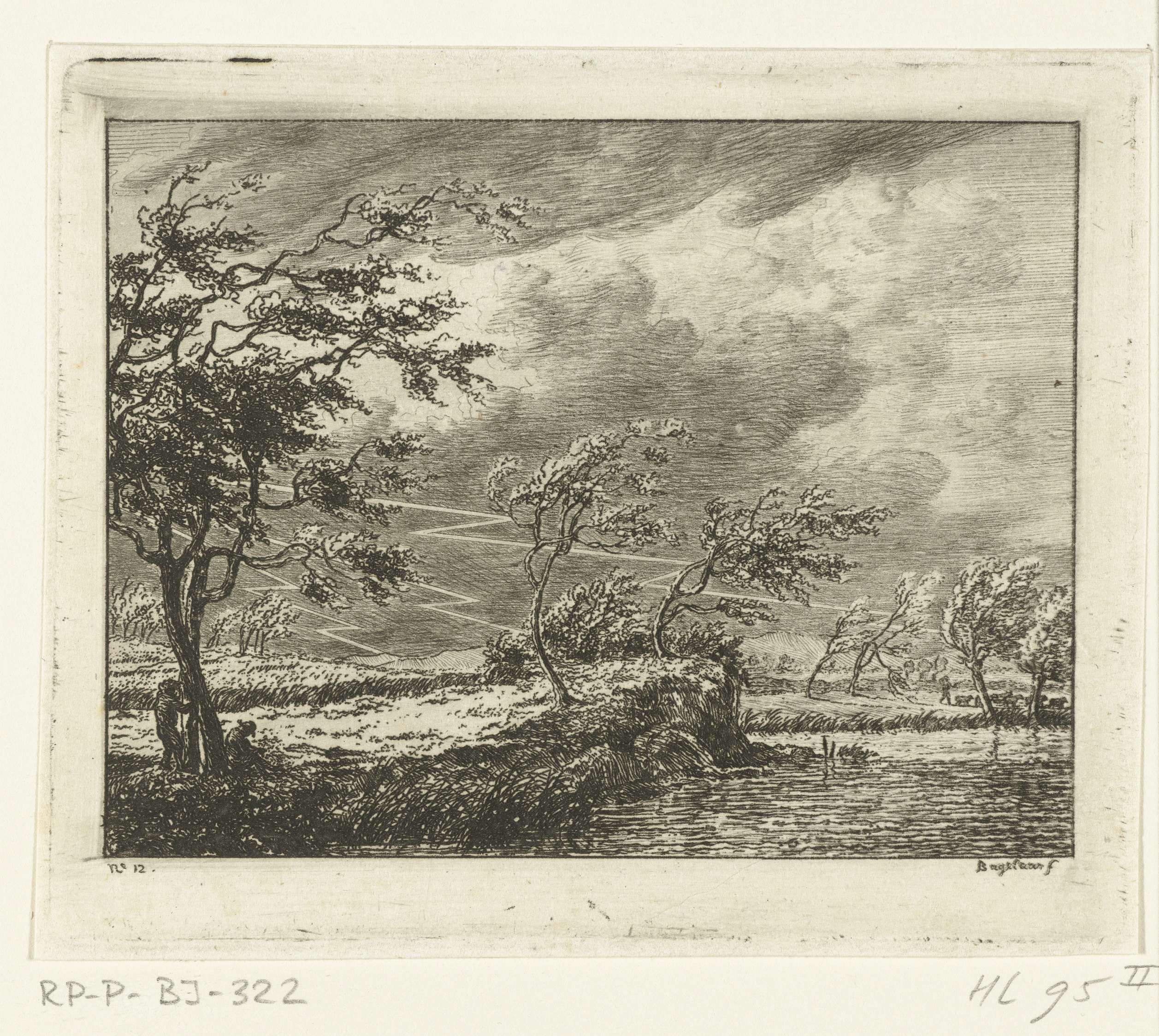 Riviergezicht met onweerslucht