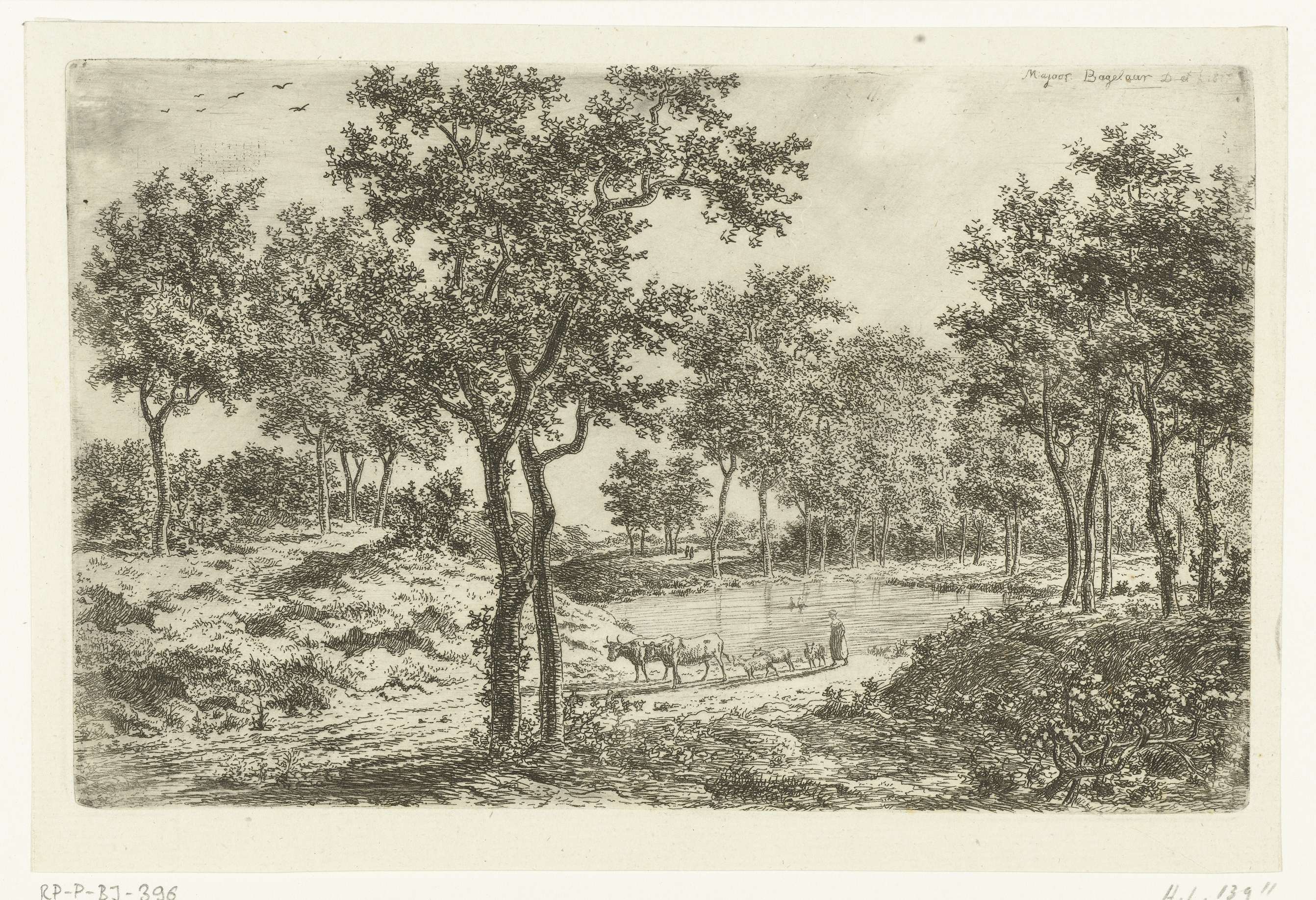 Landschap met herderin en kudde voor een vijver met twee eenden