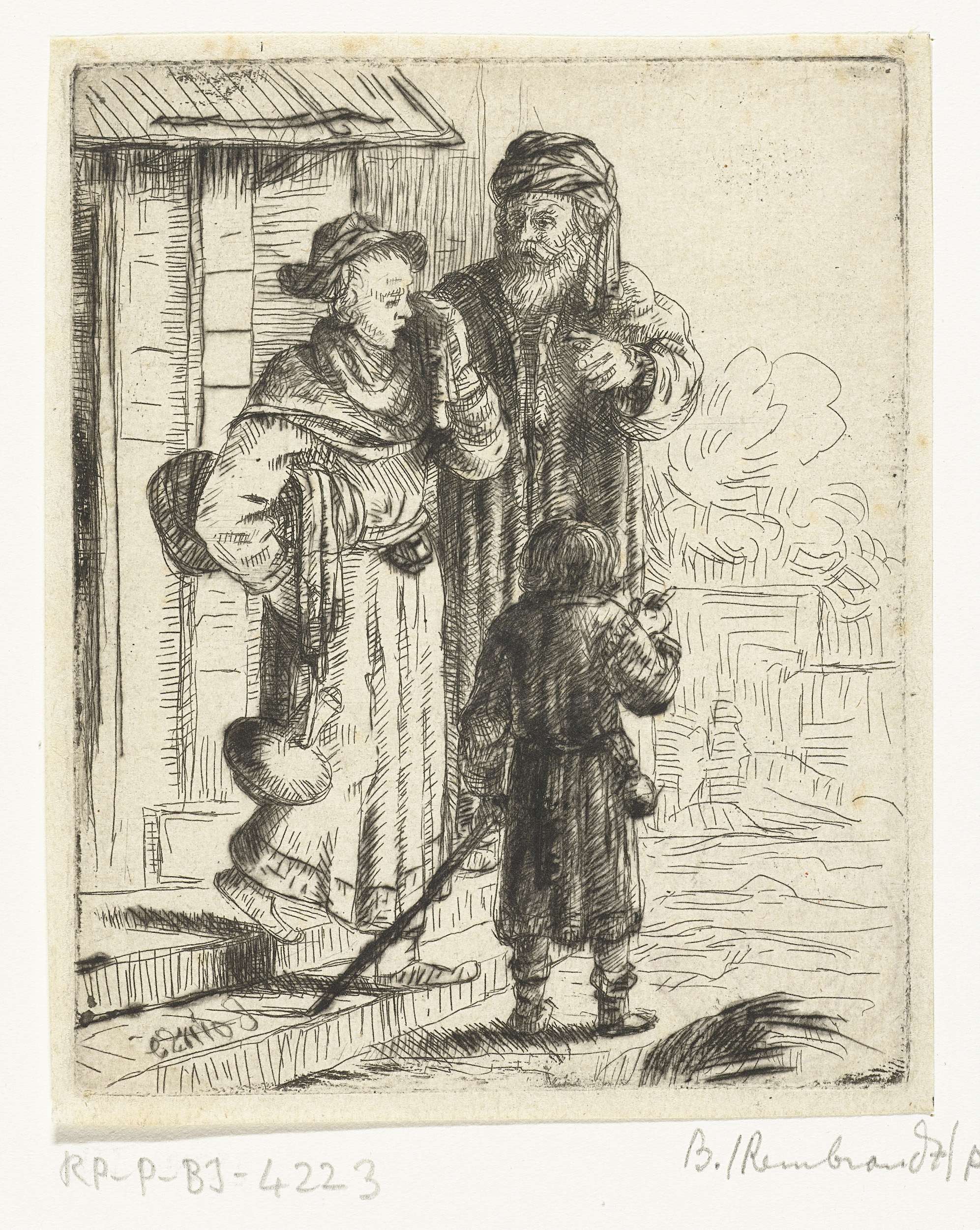Op verzoek van zijn vrouw Sara verstoot Abraham zijn eerstgeboren zoon Ismaël en diens moeder Hagar. Abraham staat voor zijn huis en stuurt Hagar en hun zoon Ismaël weg. Hagar huilt en droogt zich met een doek de tranen.