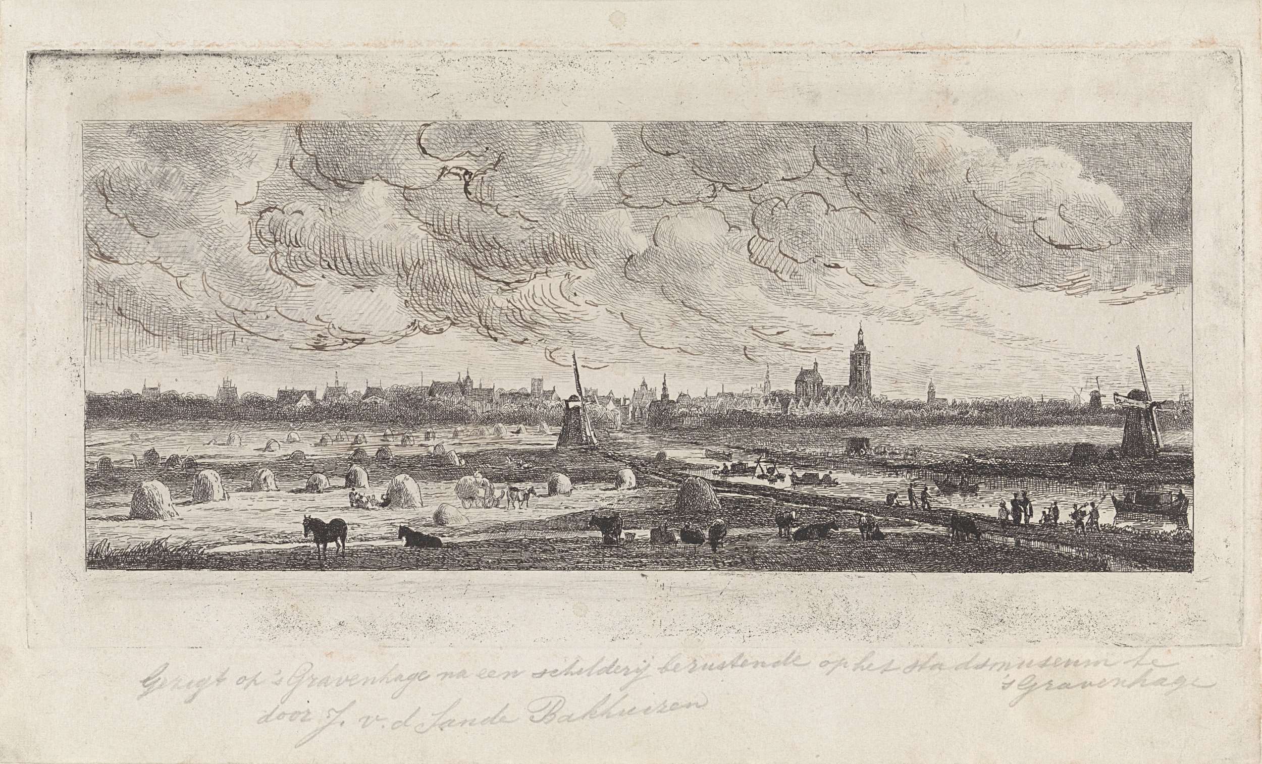 Gezicht op 's Gravenhage met op voorgrond de Delftse trekvaart.
