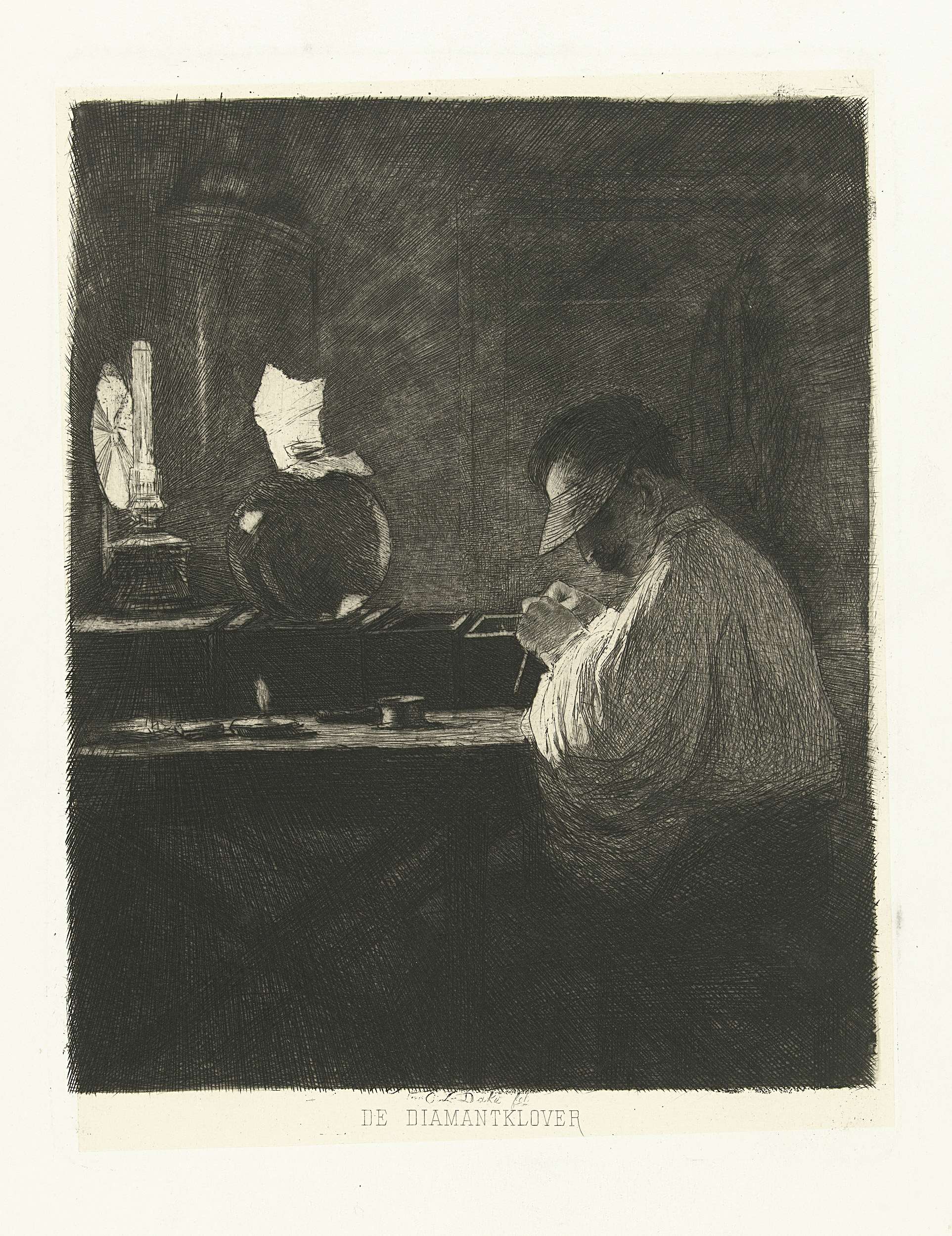 Diamantbewerker aan het werk in zijn werkplaats