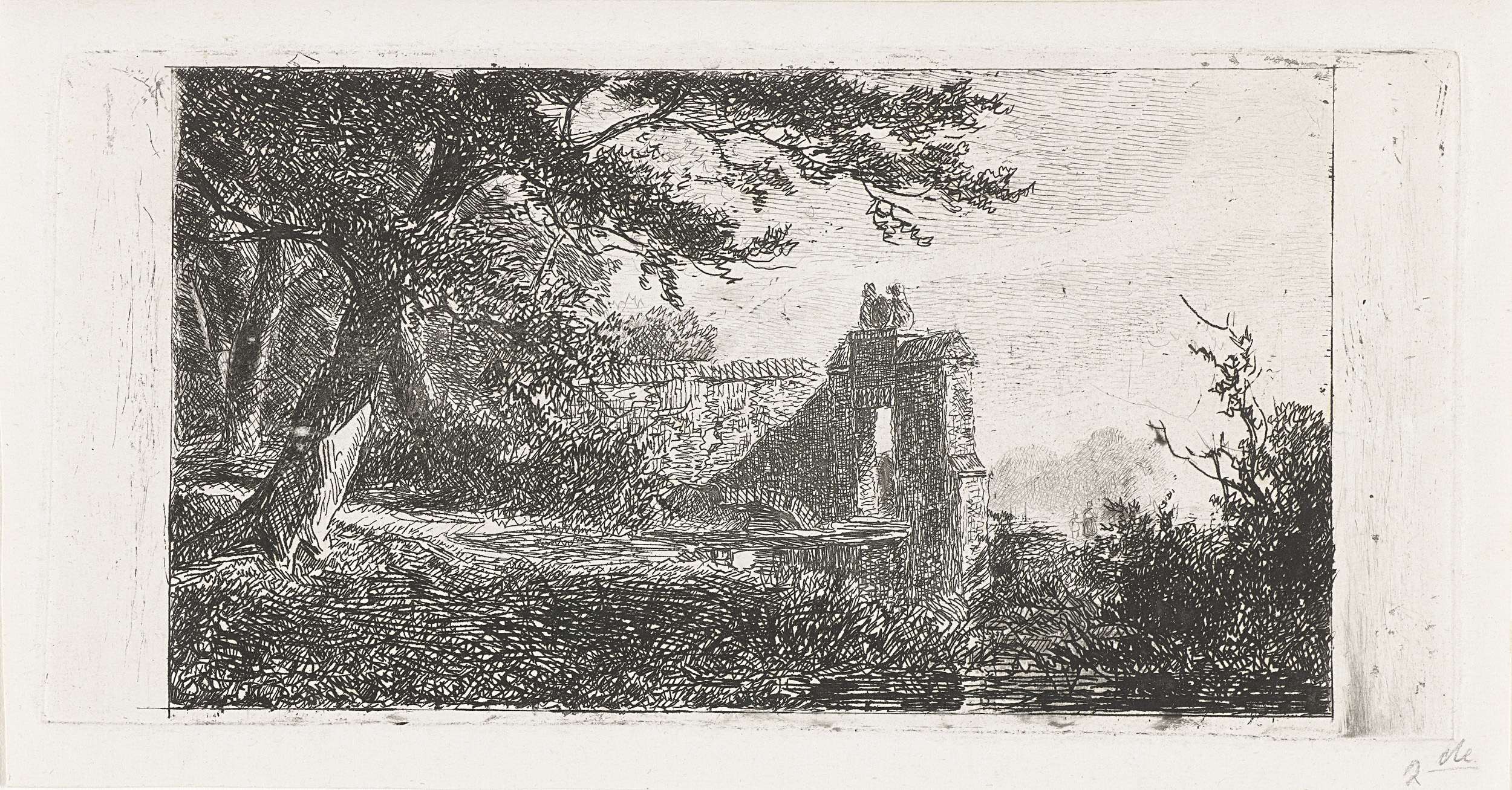 Landschap met poortgebouw