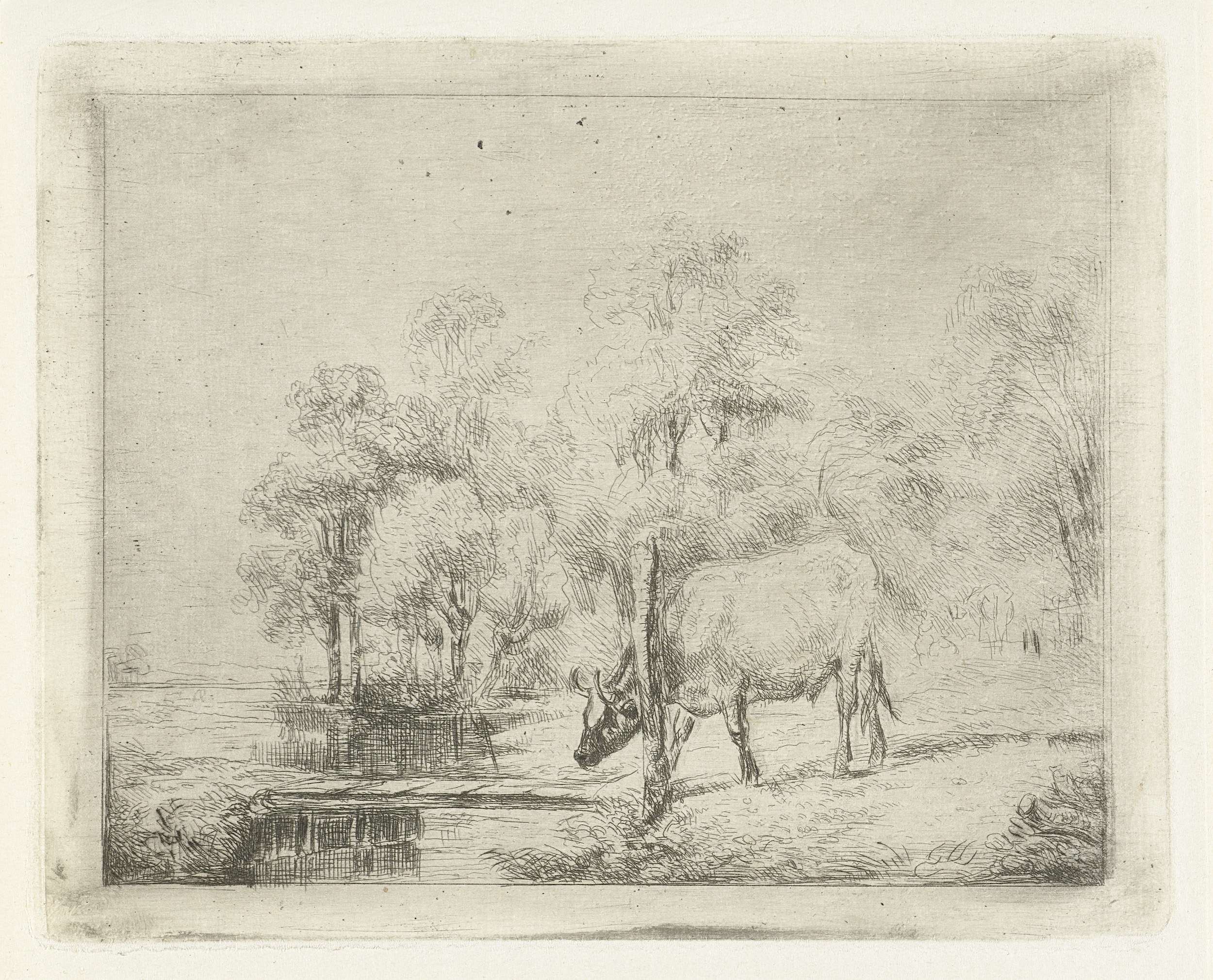 Landschap met een koe naast een sloot