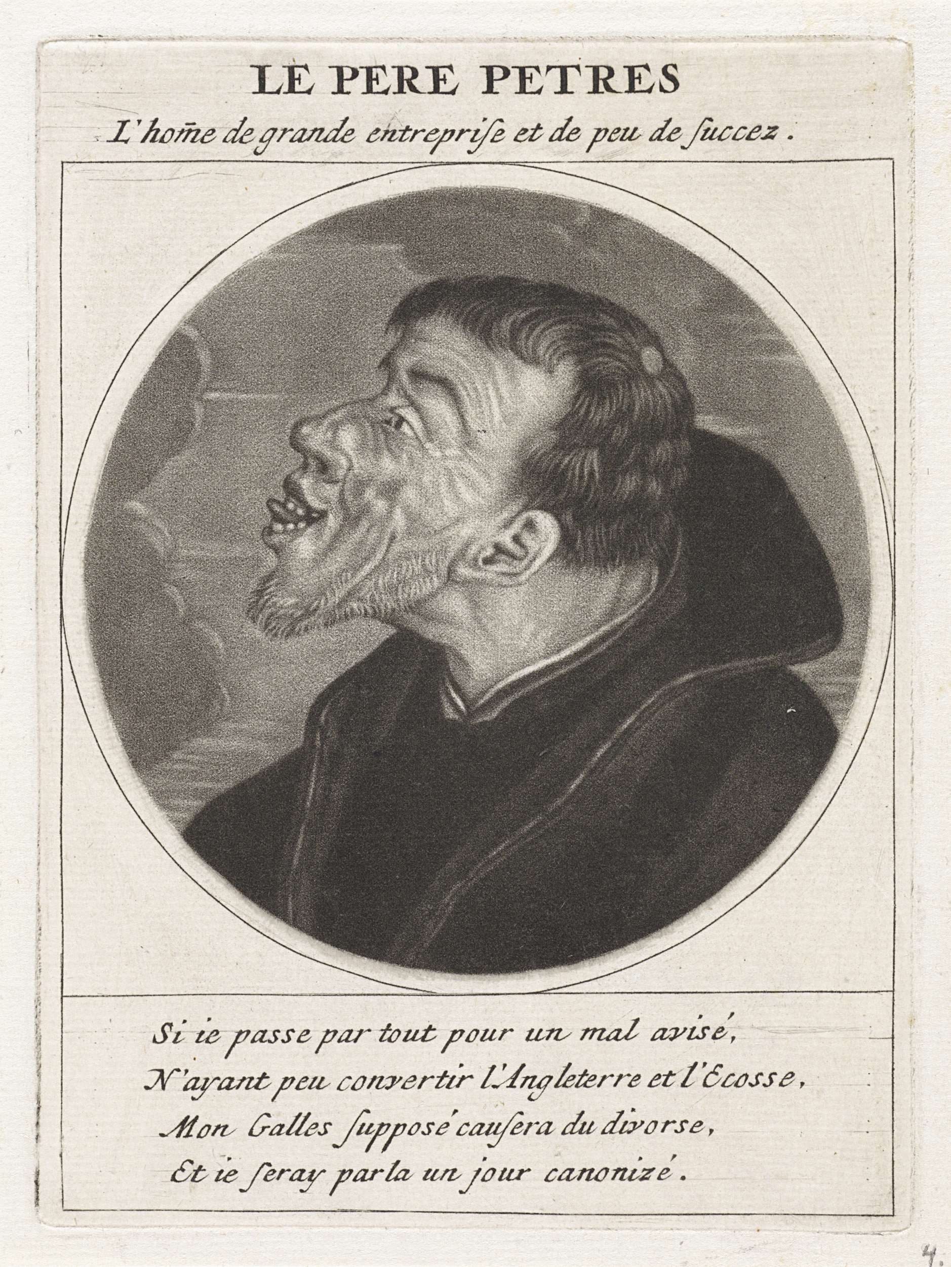 Cornelis Dusart en Jacob Gole maakten samen deze twee series venijnige antikatholieke karikaturen. Deze reeks bevat satirische portretten van de beden kers en uitvoerders van het beleid van verdrukking van protestanten onder Lodewijk XIV. Jacob Gole was zelf een uit Frankrijk gevluchte hugenoot. Al deze voorvechters van Lodewijks katholieke politiek zijn voorgesteld als monniken en ...
