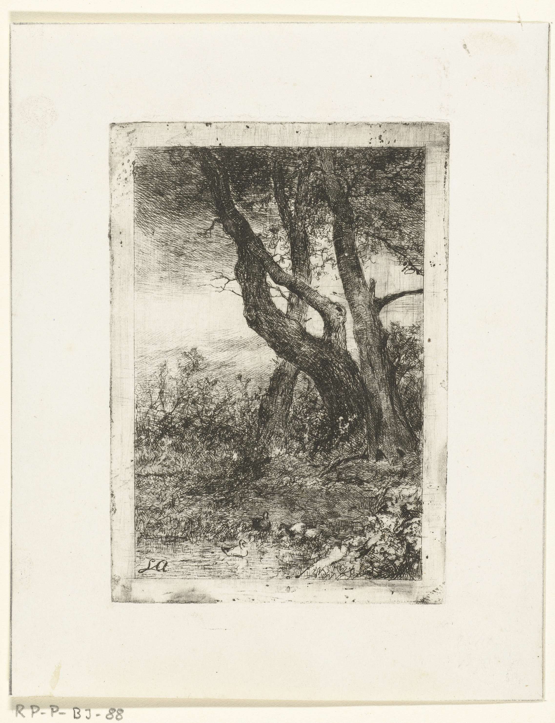 Landschap met bomen en vijver met eenden