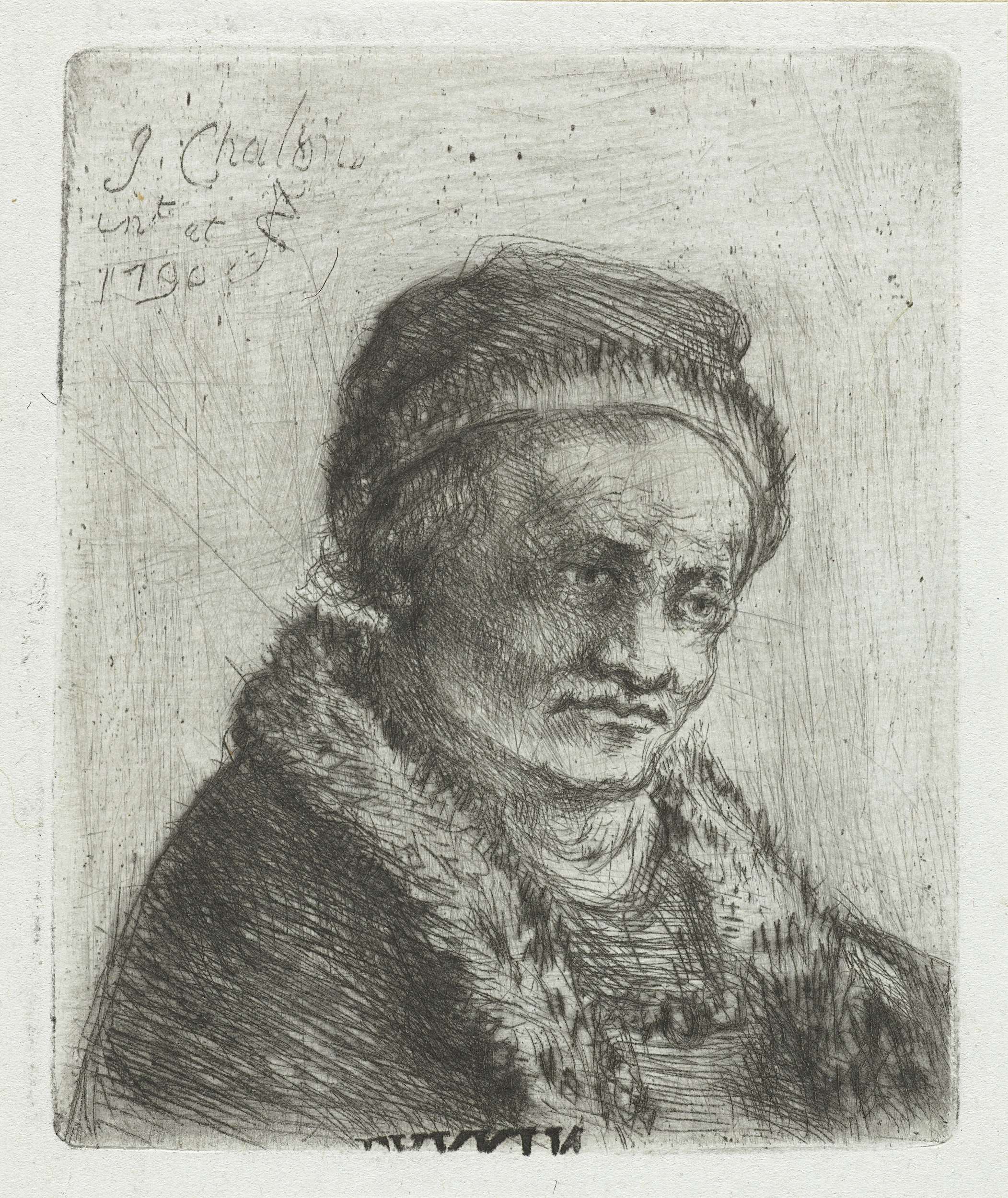 Een volwasssen man met bontkraag en muts. Buste naar rechts.