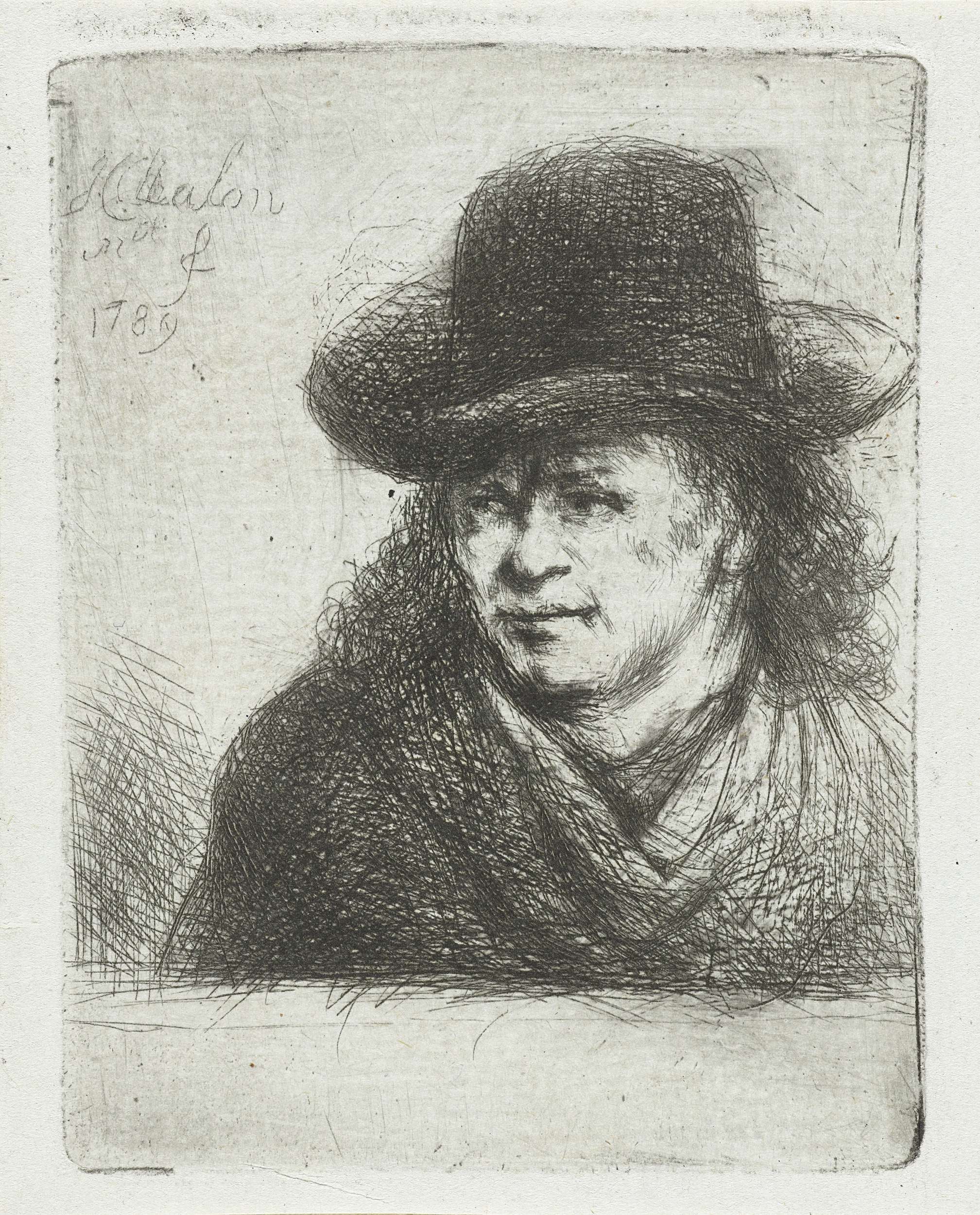 Een volwassen man met hoed. Buste naar links.