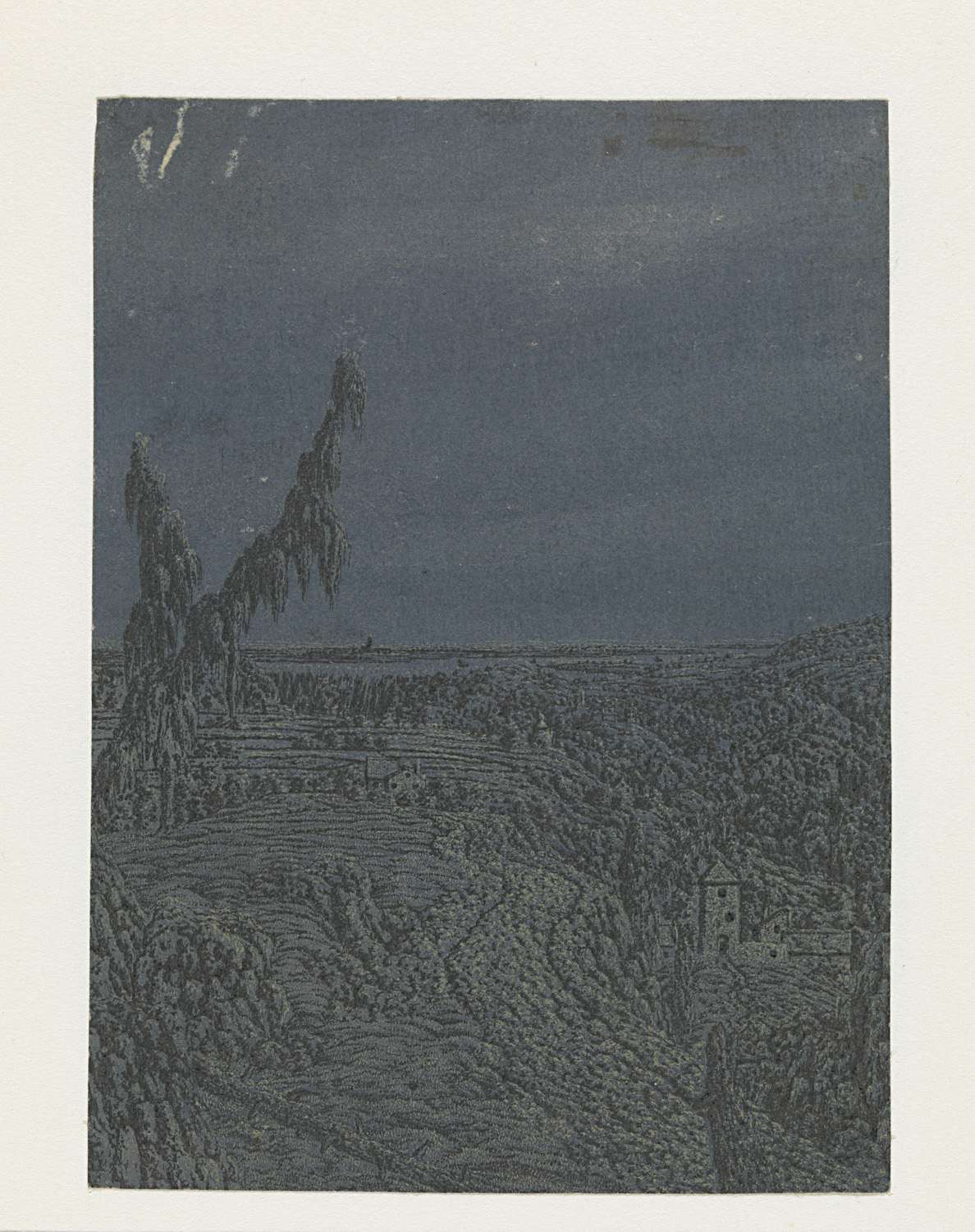Over de afdruk van de eerste plaat in zwart (RP-P-H-OB-799) drukte Segers met een tweede plaat de bleekgele hooglichten. Dat heet een registerdruk, waarvan dit mogelijk het vroegste voorbeeld is. Dankzij het blauw gekleurde papier lijkt het een nachtelijk landschap waarover een onzichtbare maan haar schijnsel strooit.