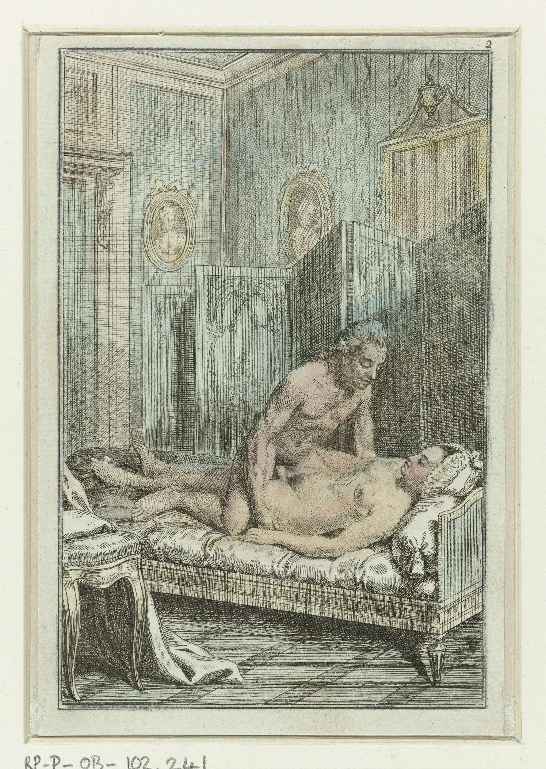 De traditie van het afbeelden van stelletjes die op ‘heterdaad’ worden betrapt, gaat terug op een 16de-eeuwse serie gravures I modi (De zestien genoegens, 1524) van Marcantonio Raimondi naar Giulio Romano. Het onderwerp is tijdloos, want ook in deze serie worden verschillende standjes expliciet getoond. De anonieme prentmaker heeft eigenlijk alleen de omgeving geactualiseerd.