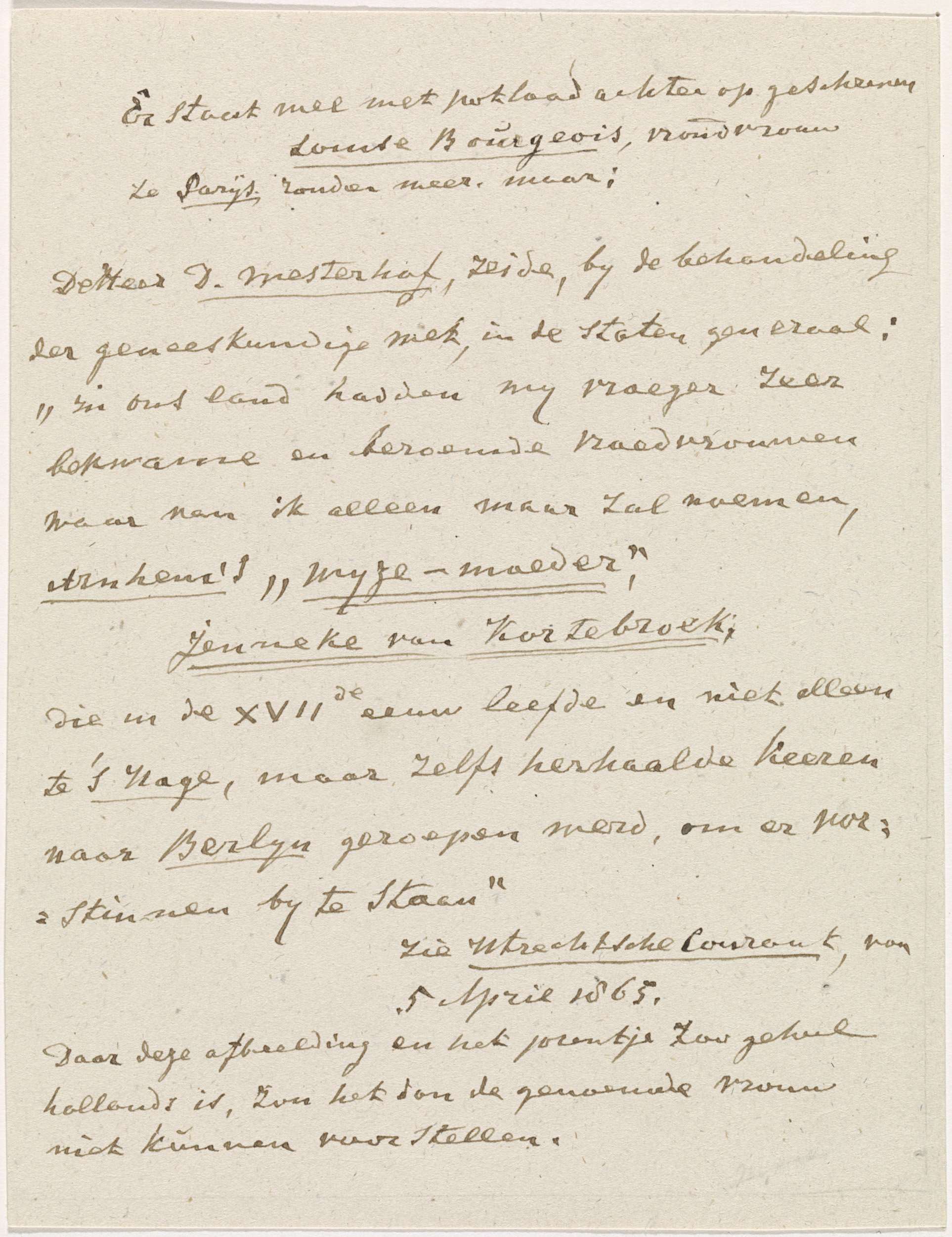 Blad met aantekeningen bij 'Portret van een vroedvrouw' door Crispijn van den Queborn
