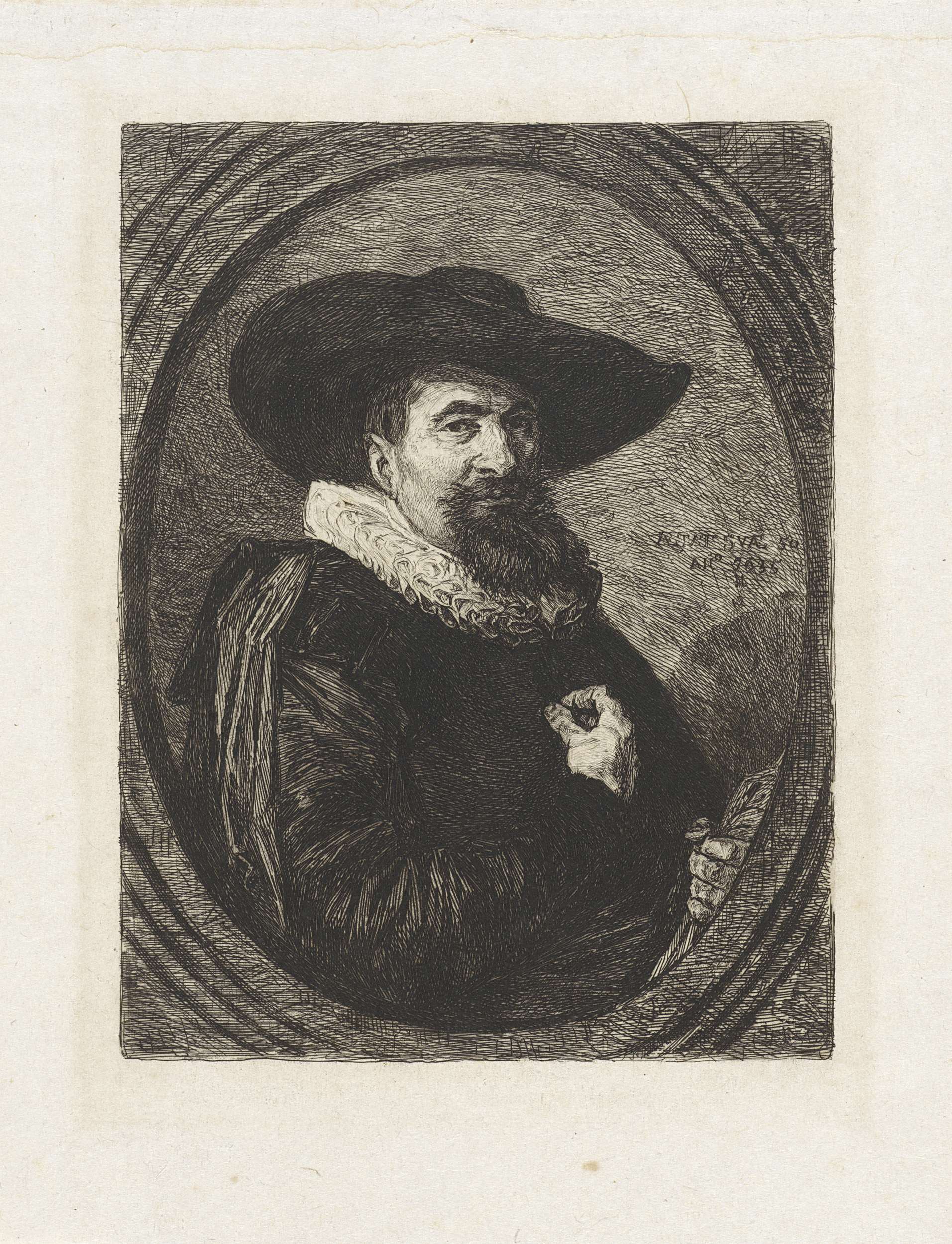 Portret van een onbekend man op vijftigjarige leeftijd met een hoed en een plooikraag.
