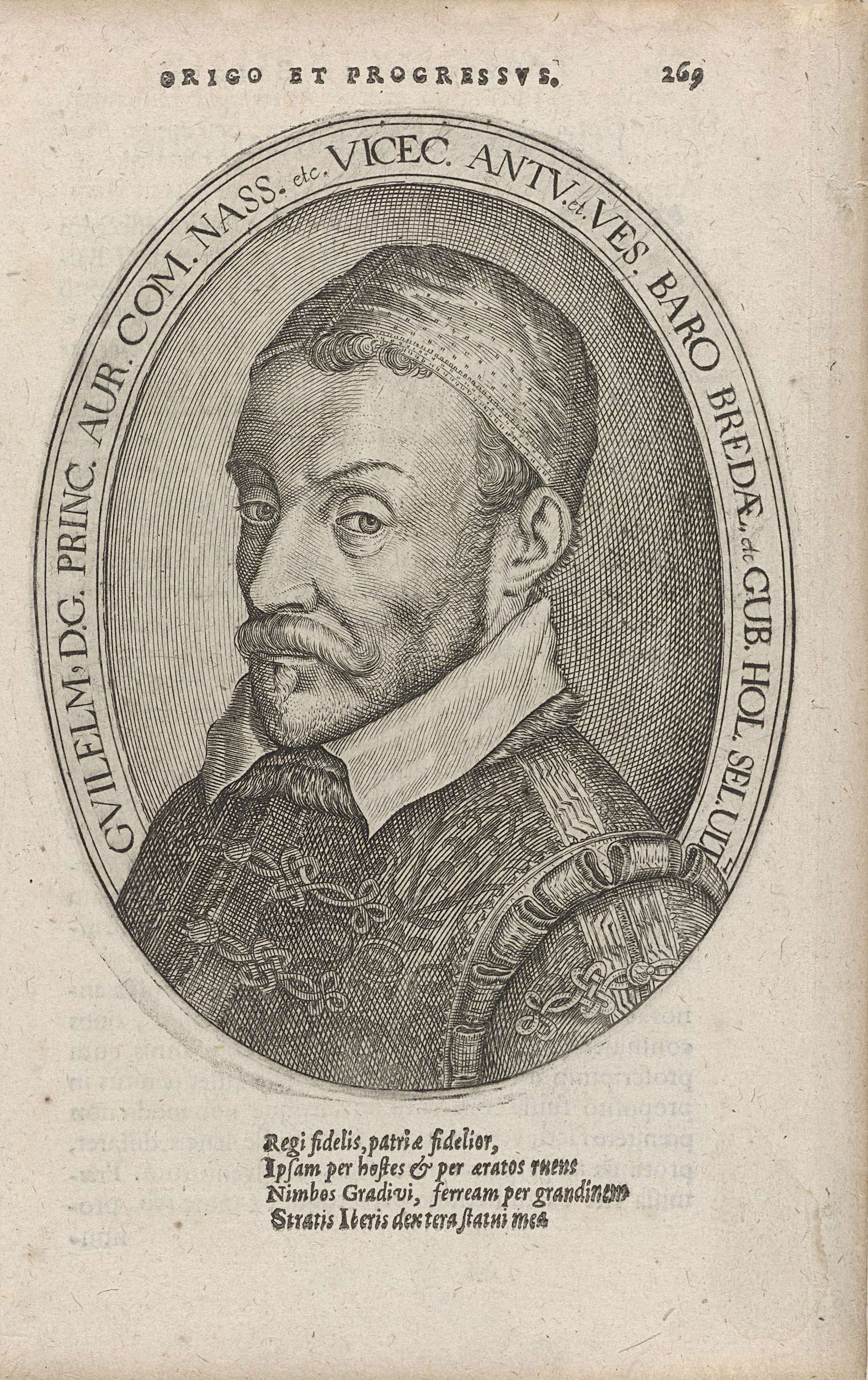 Portret van Willem I in een ovaal met randschrift dat bij de schouders aansluit.