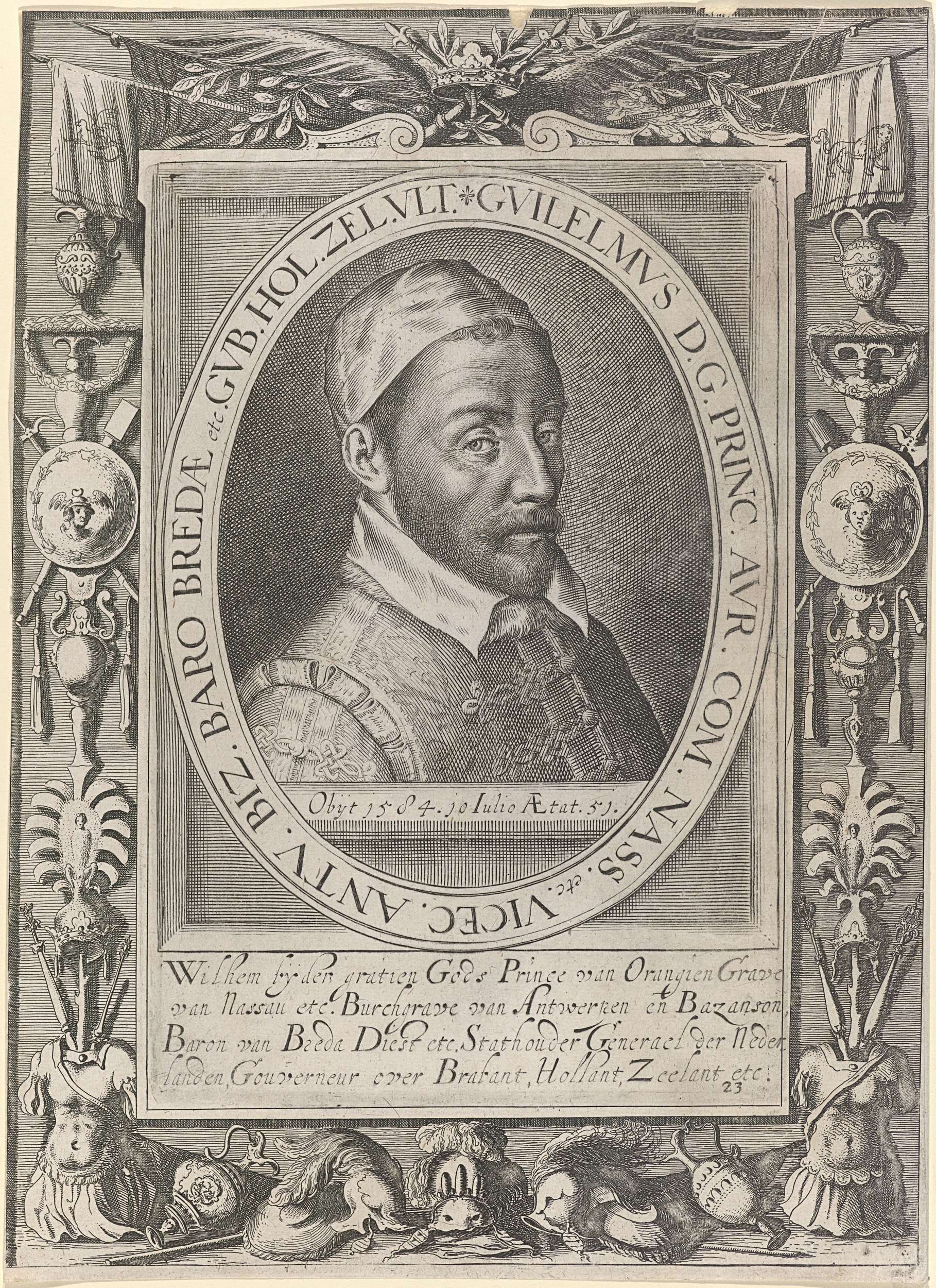 Portret van Willem I, prins van Oranje, op 51-jarige leeftijd