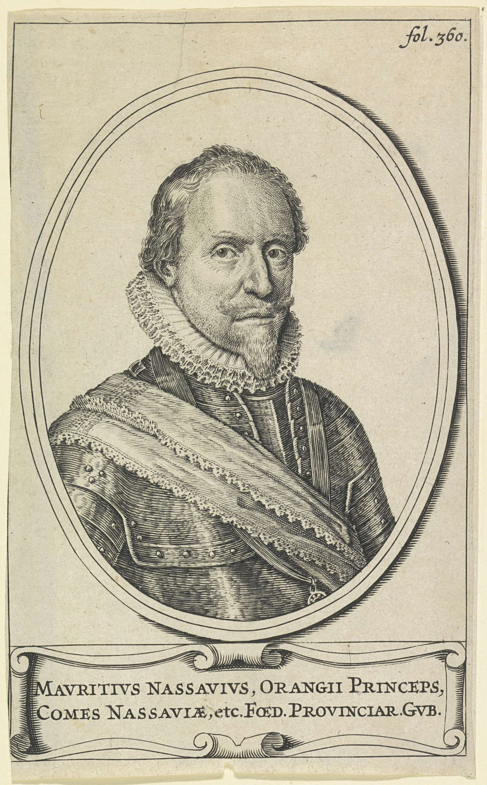 Portret van Maurits in een ovaal. In een cartouche zijn naam. Rechtsboven 'fol. 360.'.