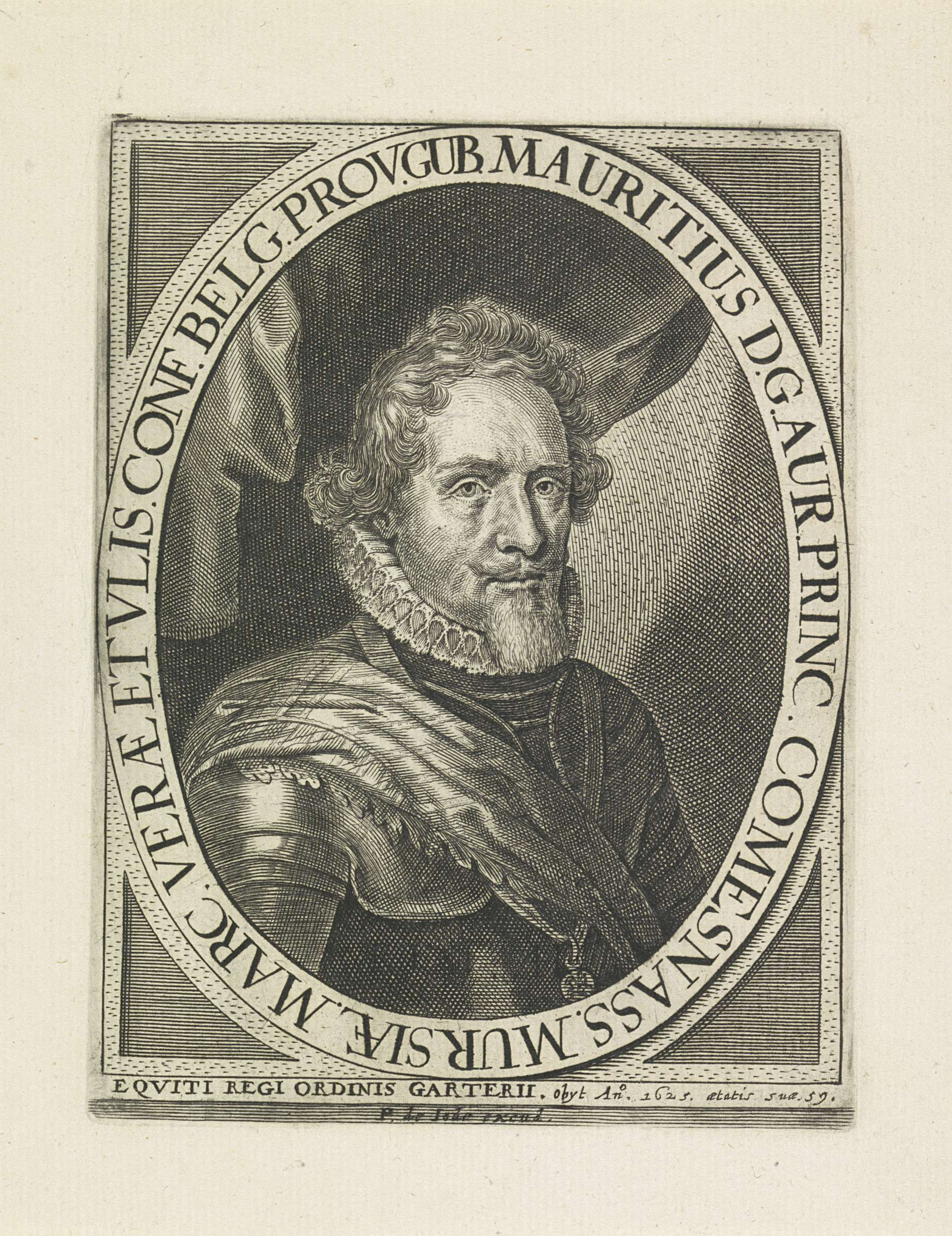 Portret van Maurits, prins van Oranje, op 59-jarige leeftijd