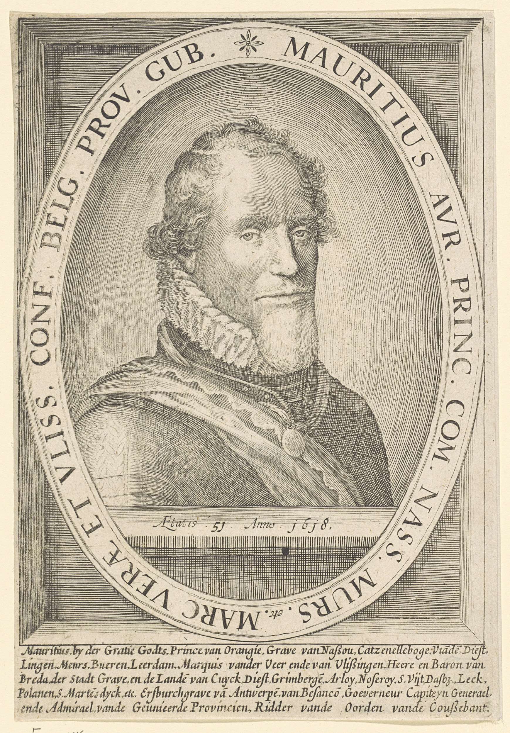 Portret van Maurits, prins van Oranje, op 51-jarige leeftijd
