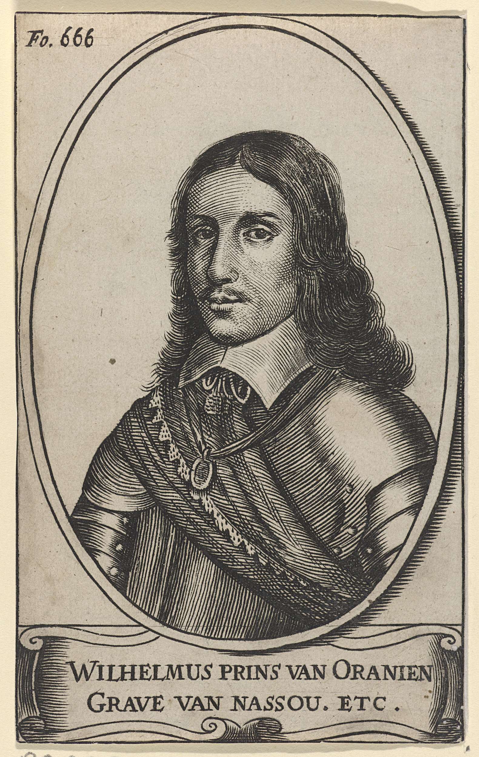 Portret van Willem II in een ovaal. In een cartouche zijn naam. Linksboven 'Fo. 666'.