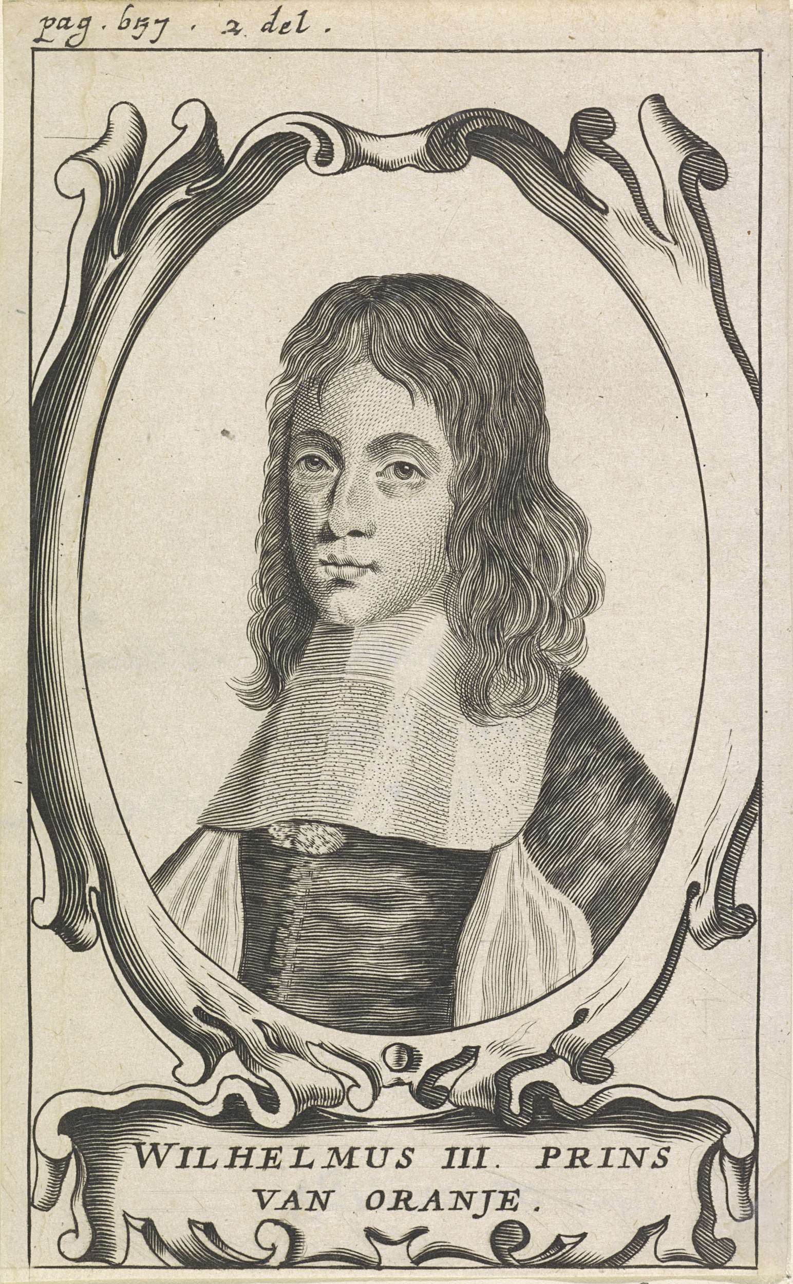 Portret van Willem III in een geornamenteerd ovaal. In een cartouche zijn naam en titel. Linksboven 'pag. 657. 2. del.'.