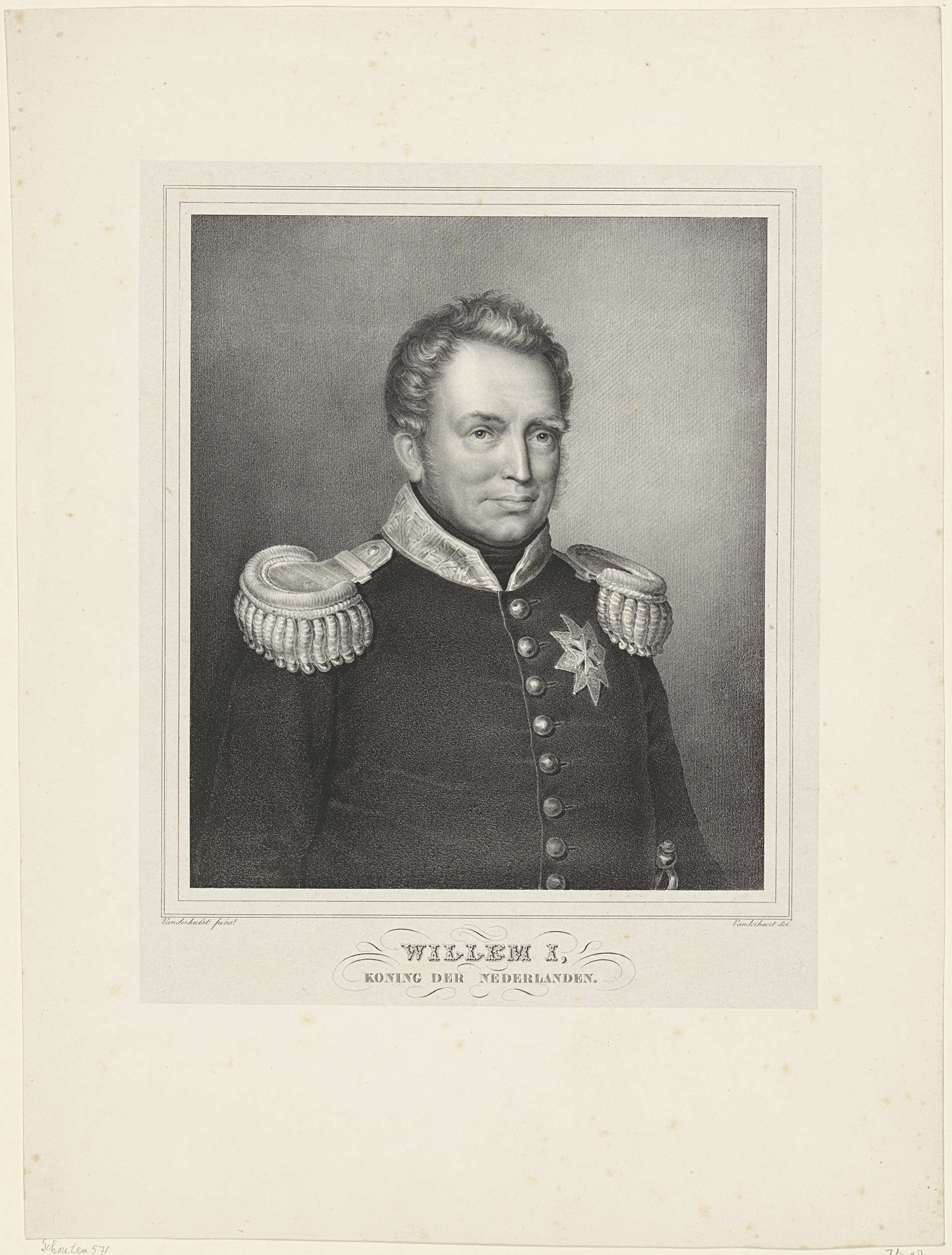 Portret van Willem I Frederik. In de ondermarge zijn naam en titel.