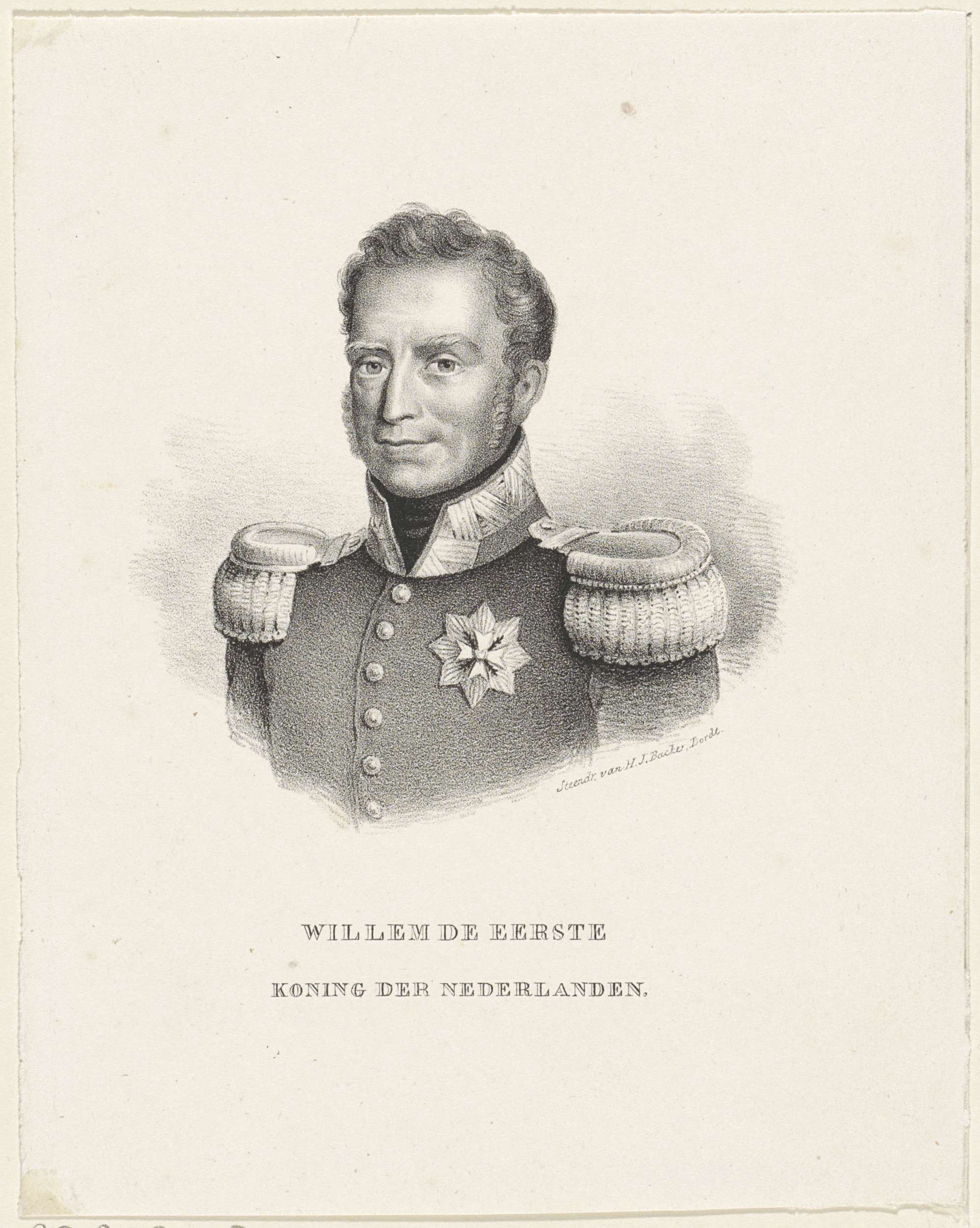 Portret van Willem I Frederik. In de ondermarge zijn naam en titel.