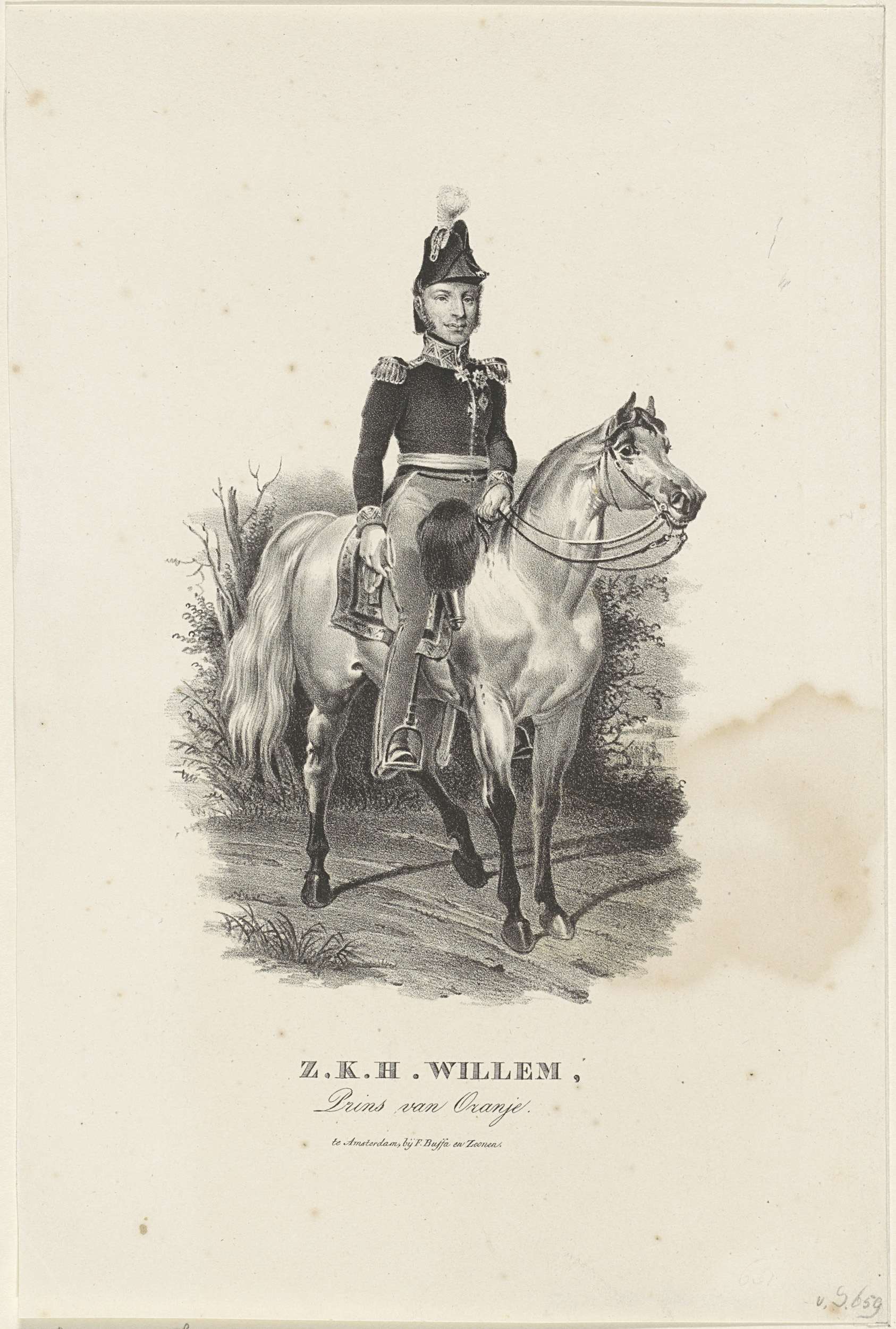Ruiterportret van Willem II. In de ondermarge zijn naam en titel.