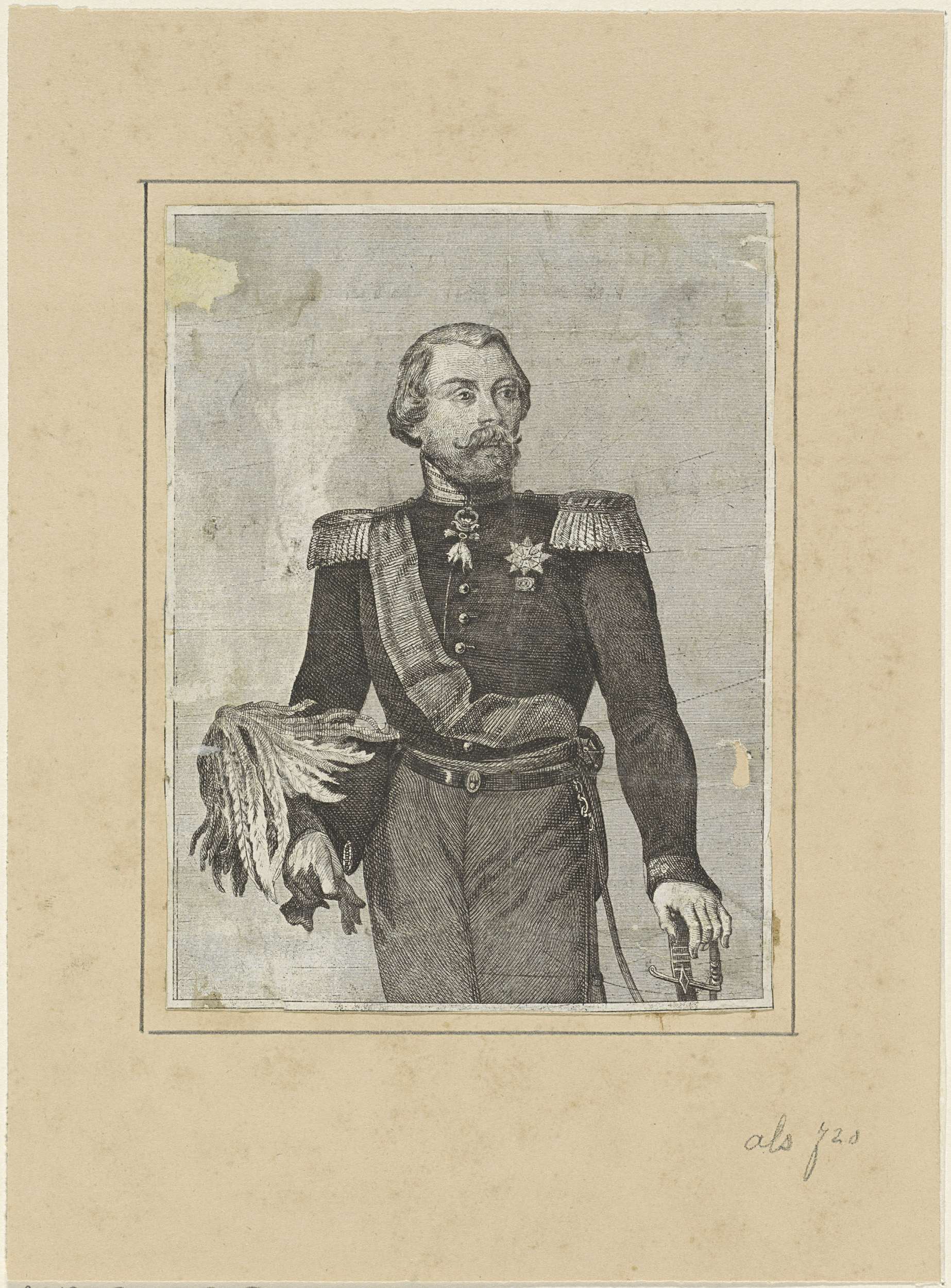 Portret van Willem III. Onder zijn rechterarm zijn hoed.