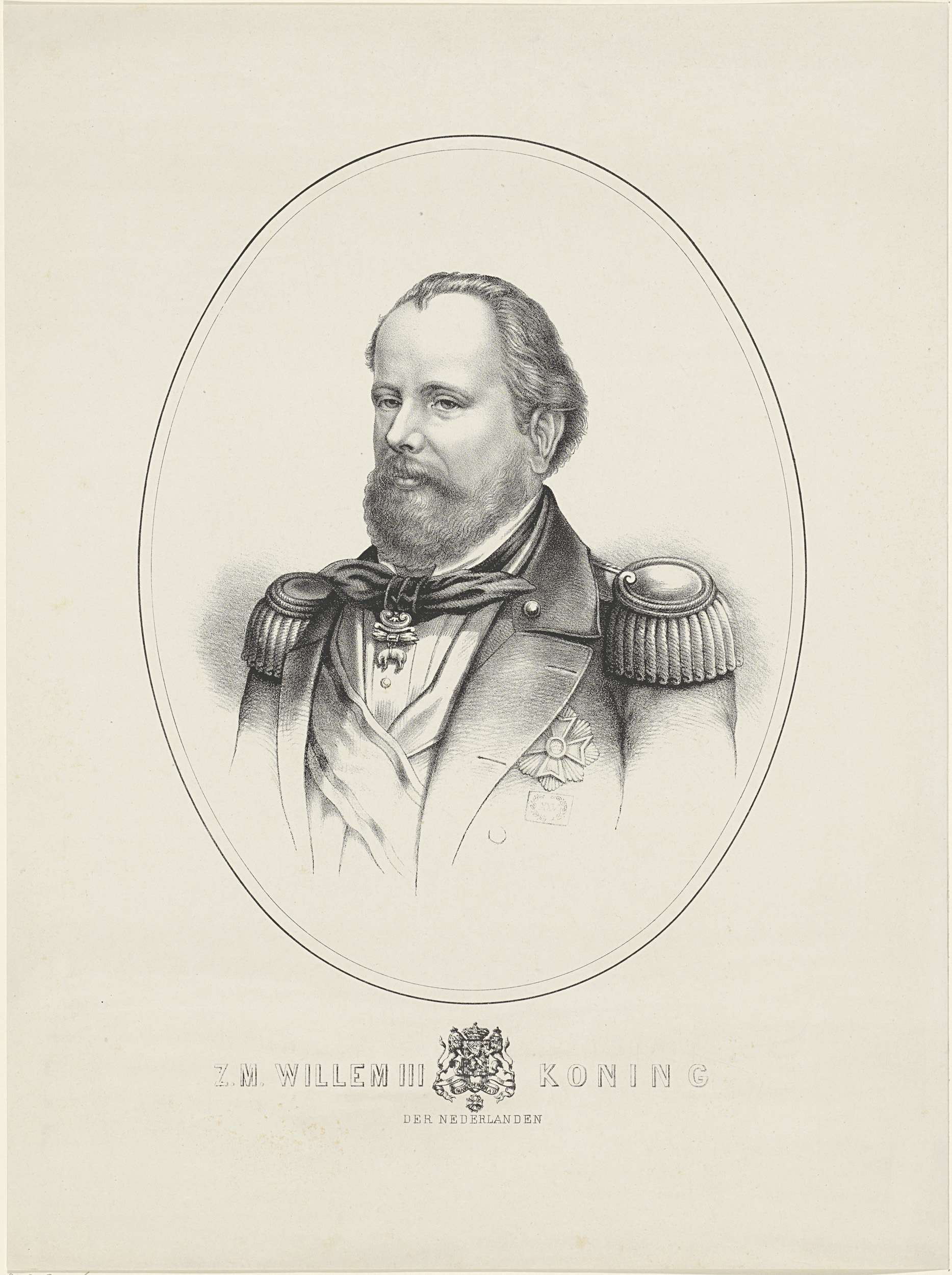 Portret van Willem III in een ovaal. Midden onder zijn wapen met een kroon en twee leeuwen. Daaronder op een banderol zijn geslachtsspreuk. In de ondermarge zijn naam en titel.